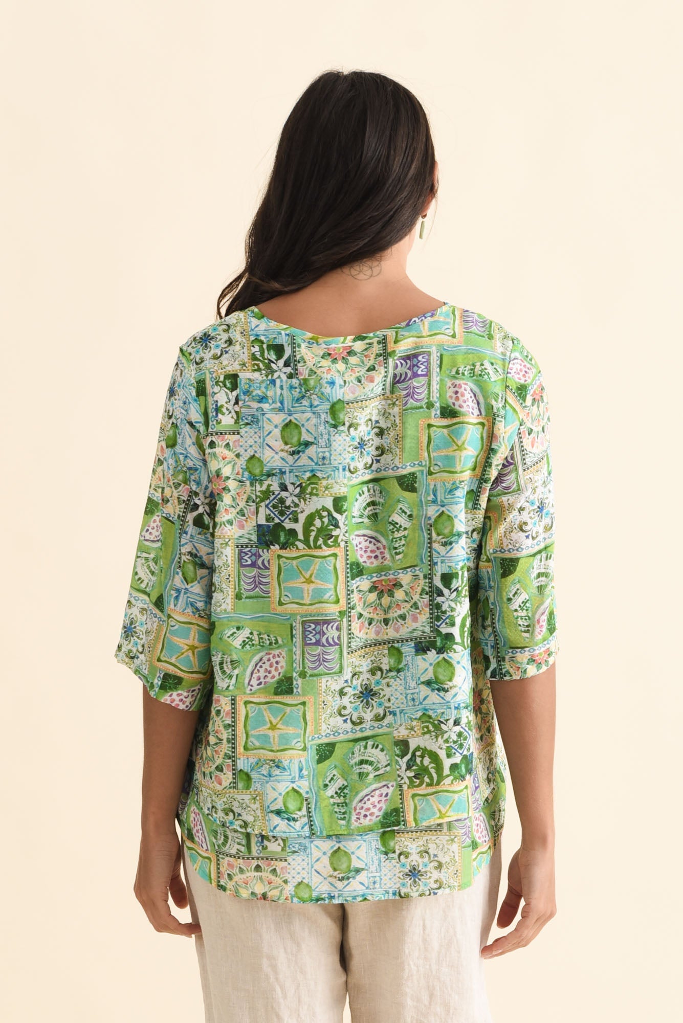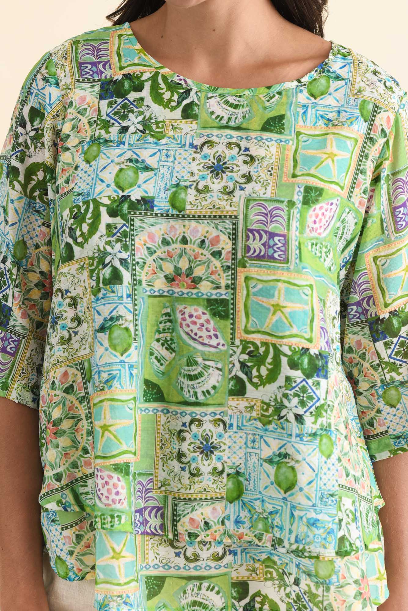 LIORA GREEN PATCHWORK LAYERED TOP