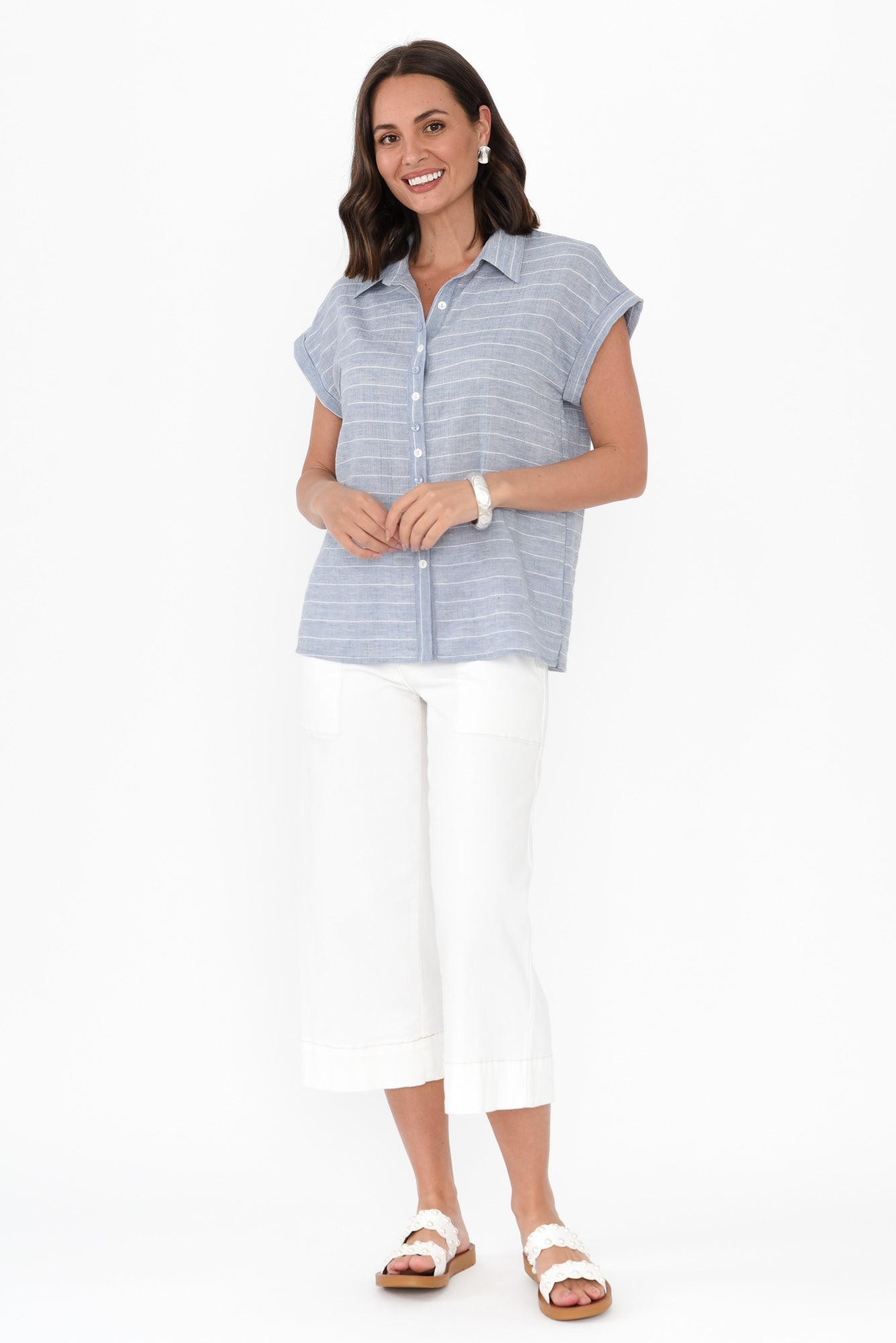 LORI LIGHT BLUE STRIPE COLLARED SHIRT