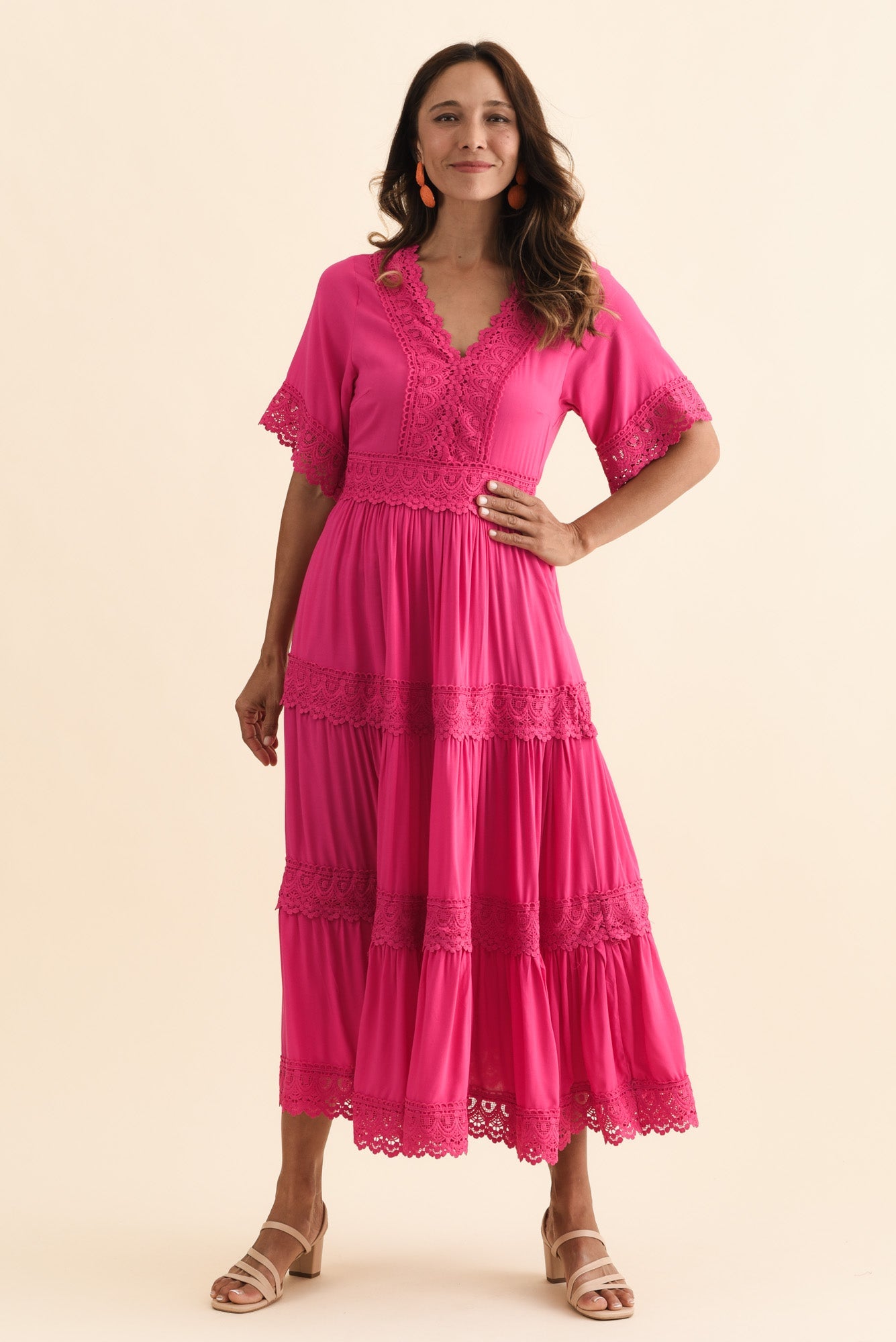 LORIS PINK LACE TRIM DRESS