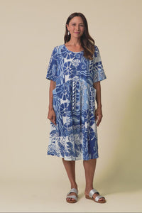 Flattering A-line silhouette is defined by a gentle crescent-shaped waist seam