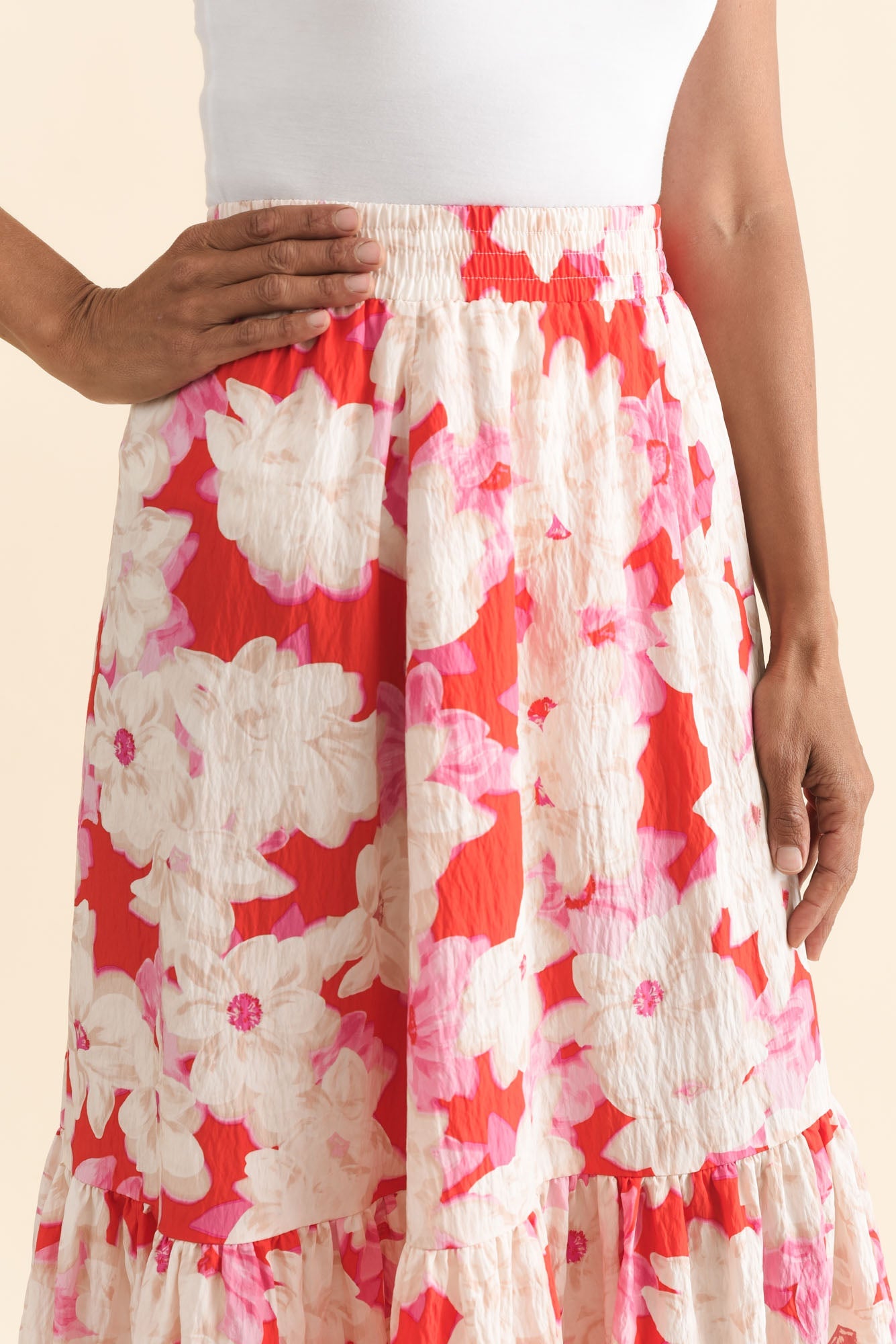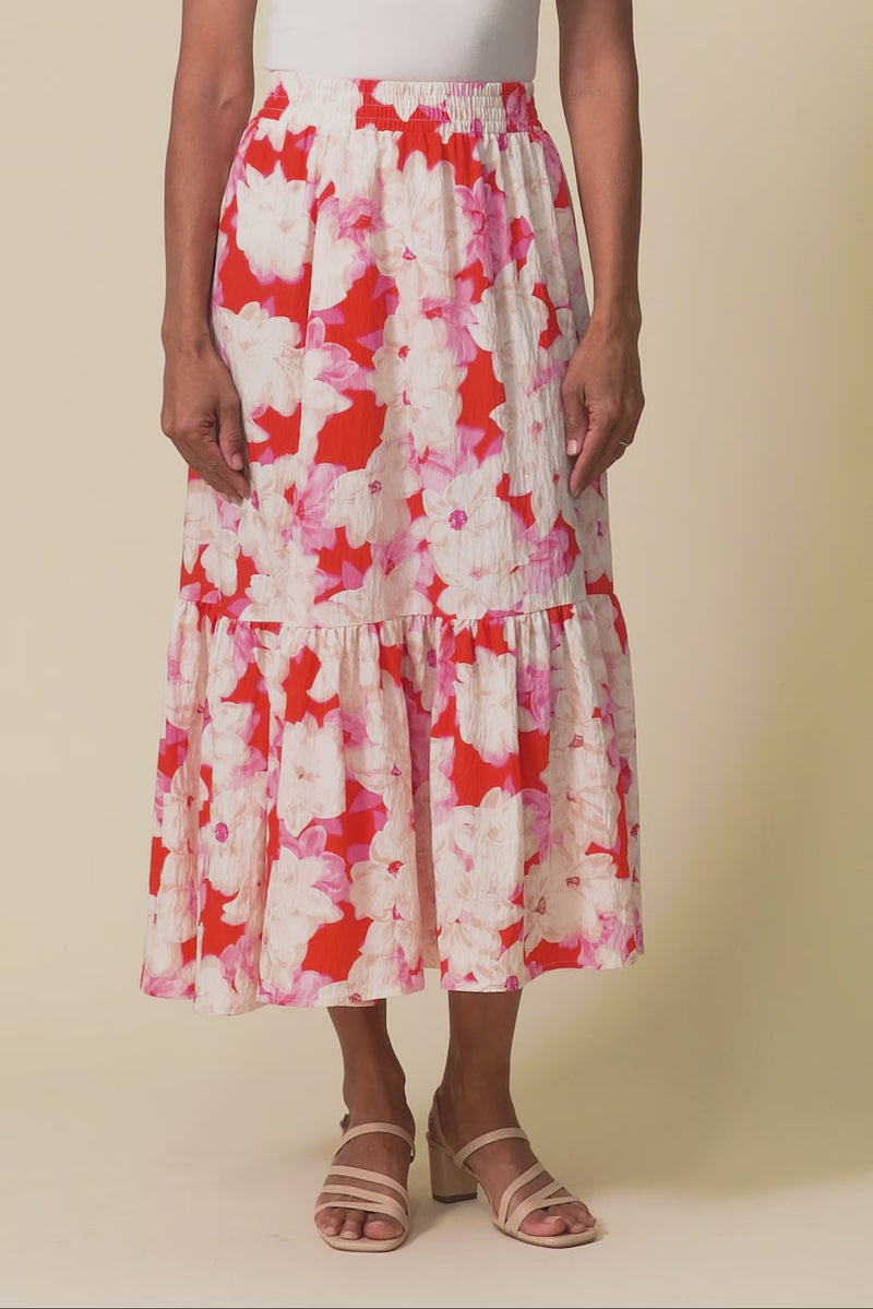 MAGGIE RED FLORAL POCKET SKIRT