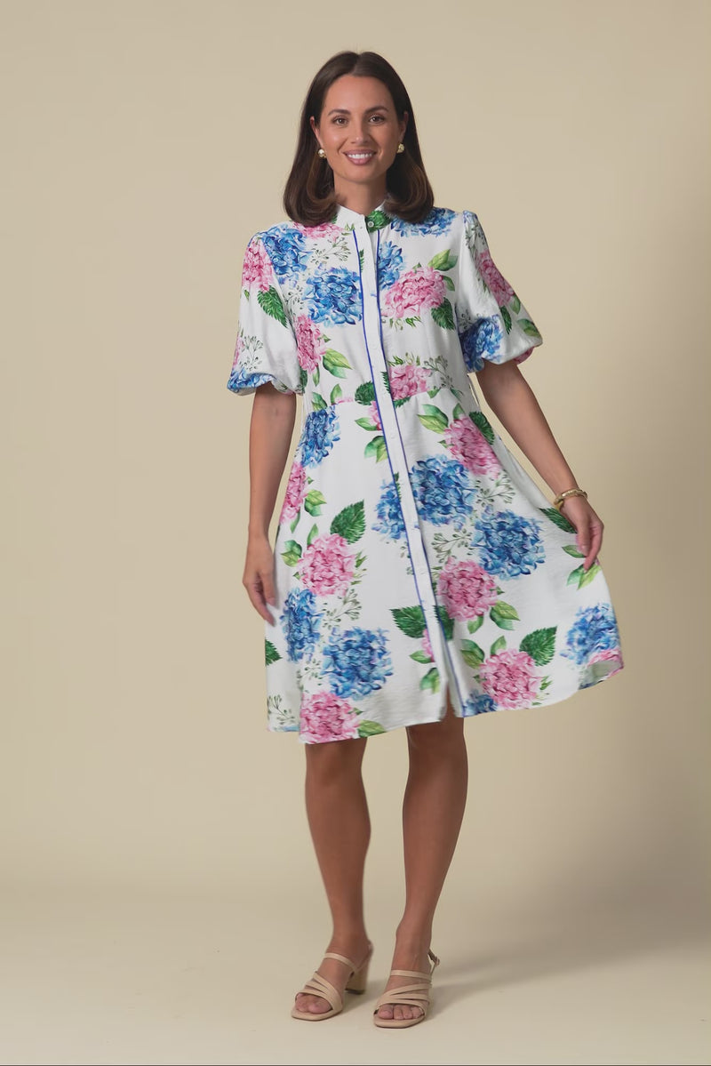 Malia White Flower Linen Cotton Dress