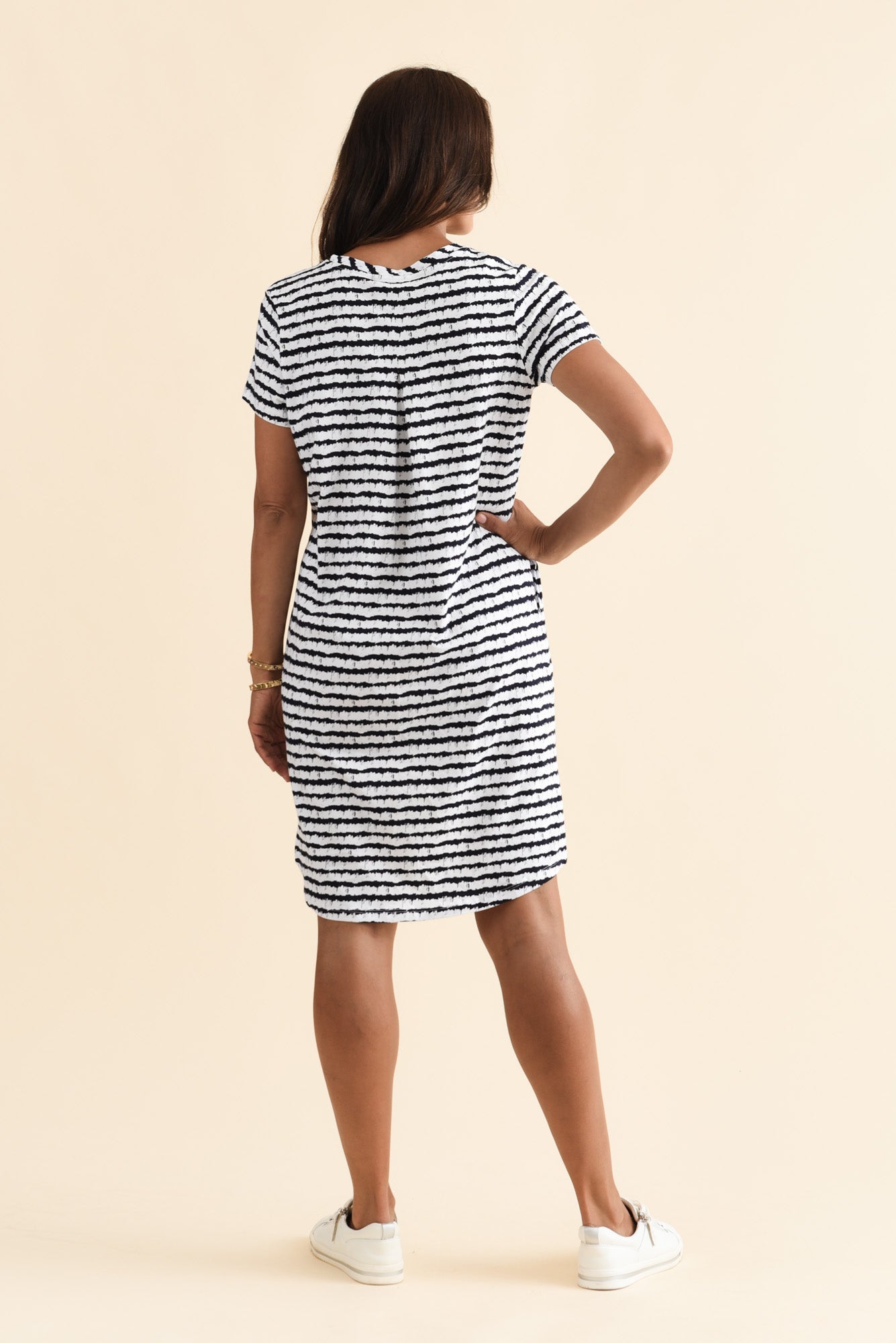 Mandy Navy Abstract Stripe Cotton Tee Dress