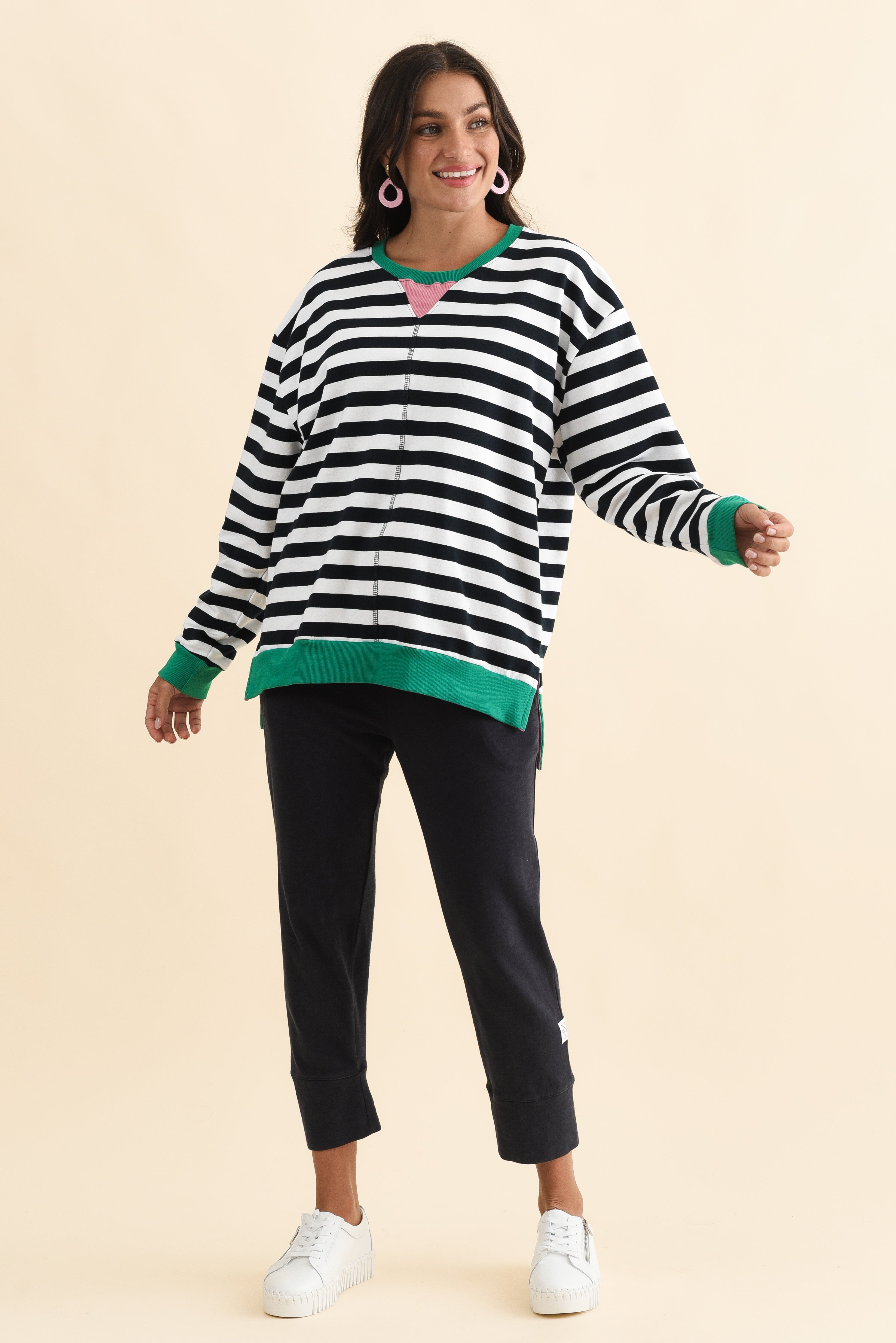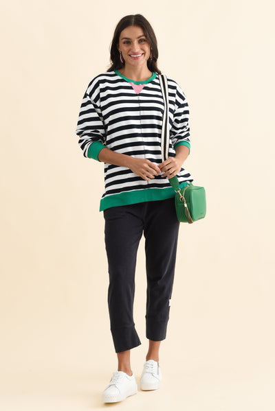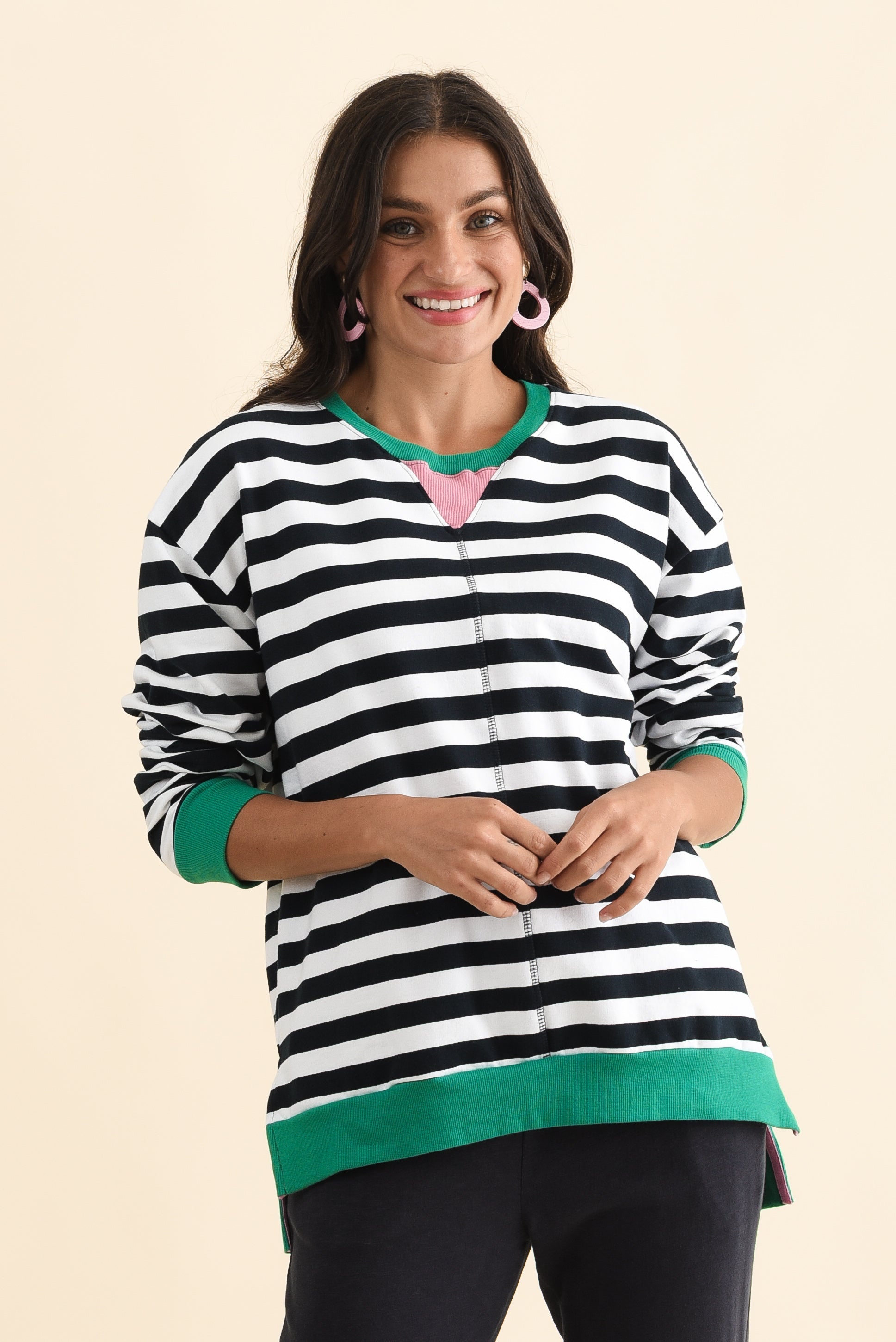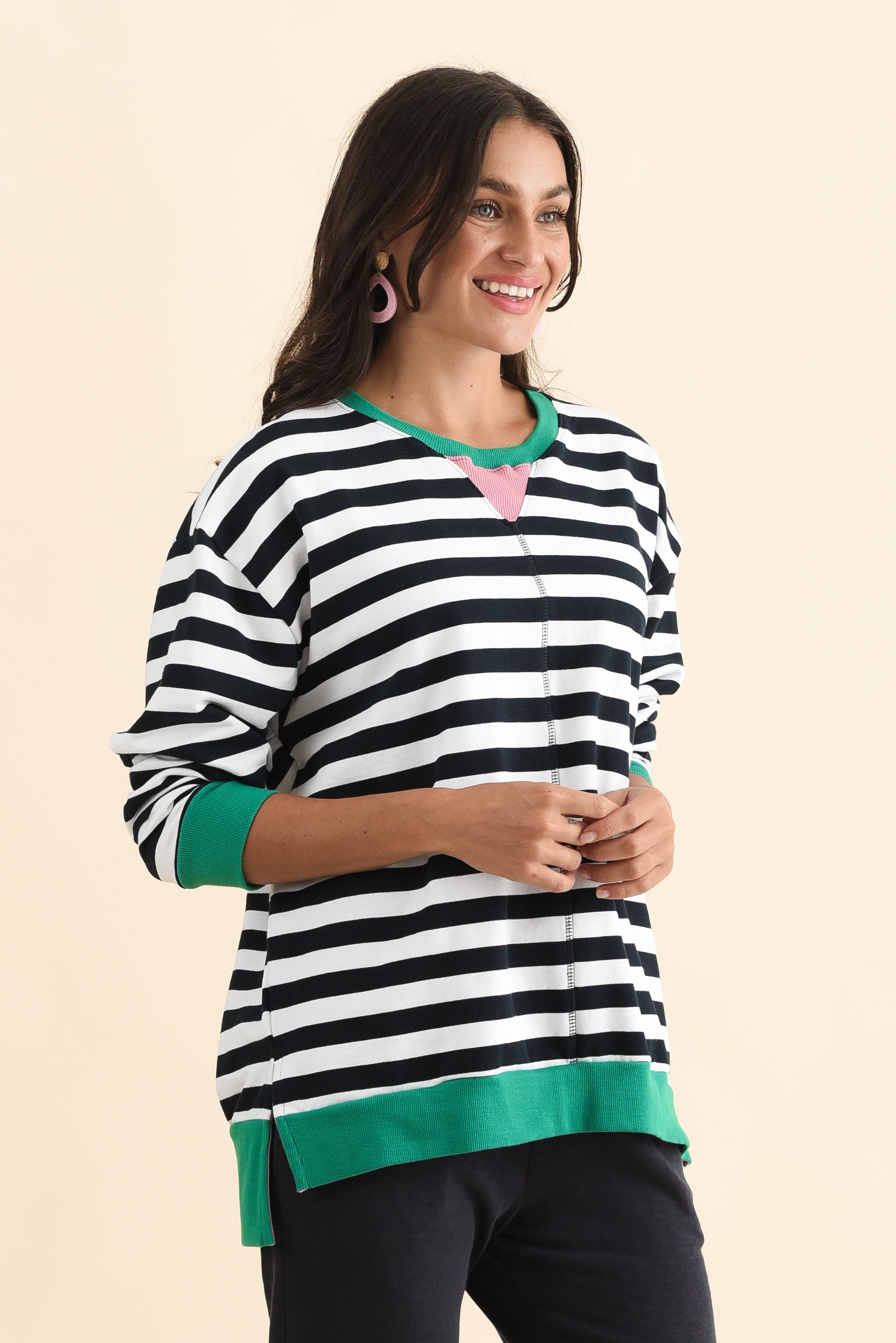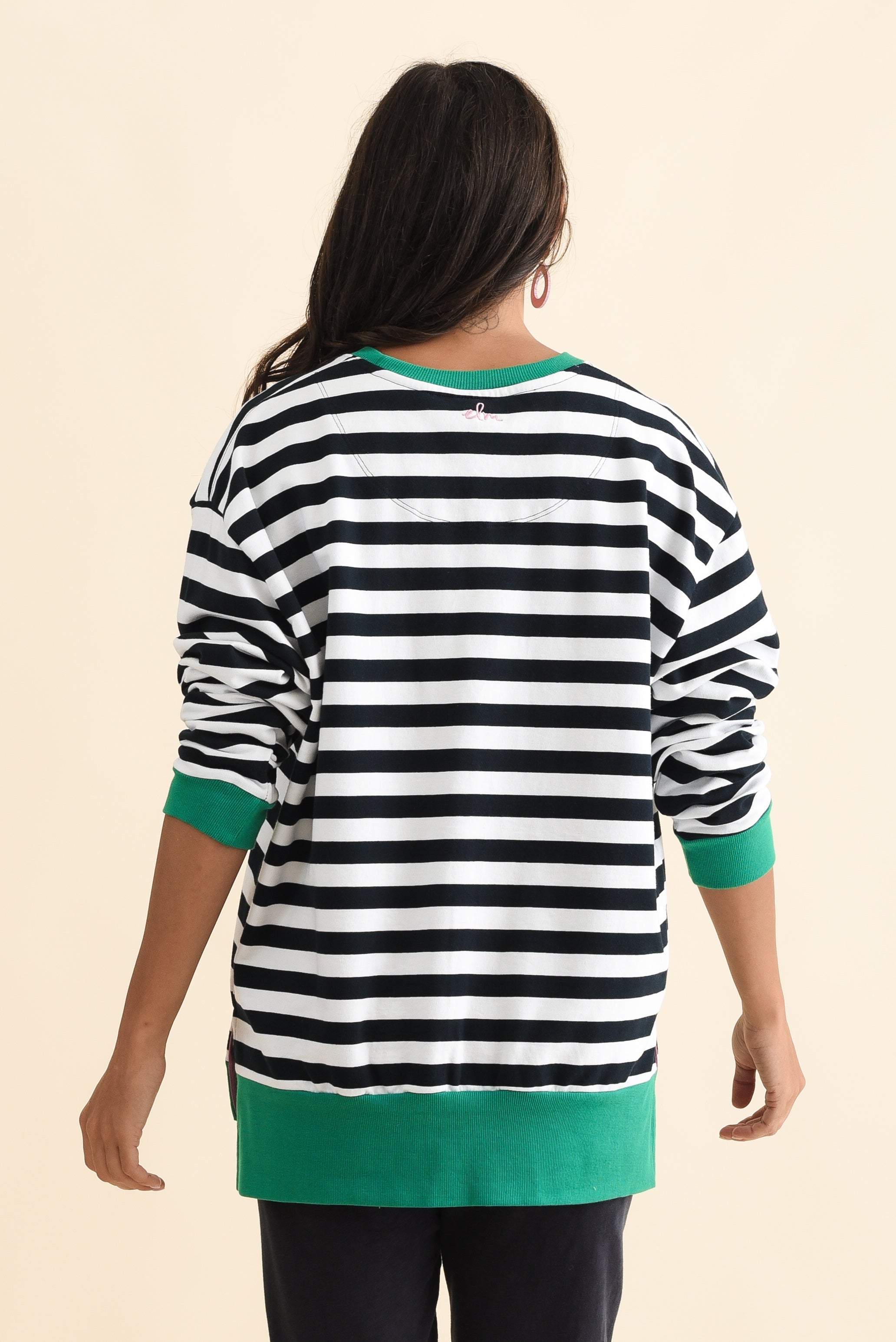 Maps Navy Stripe Cotton Crewneck Sweatshirt