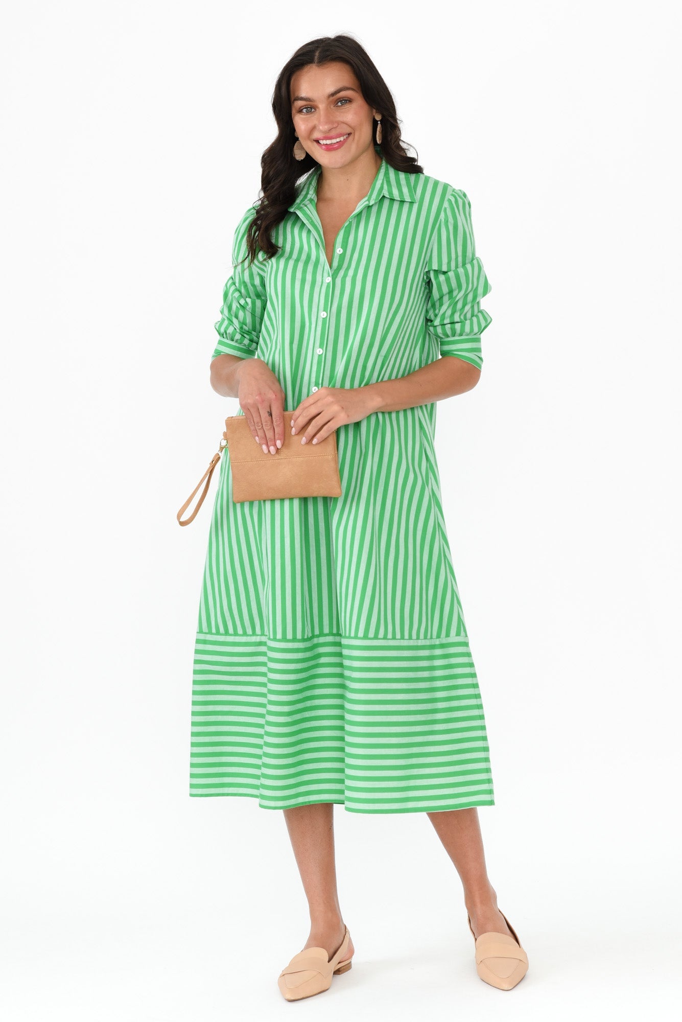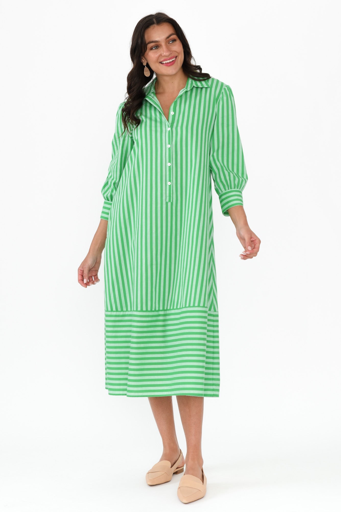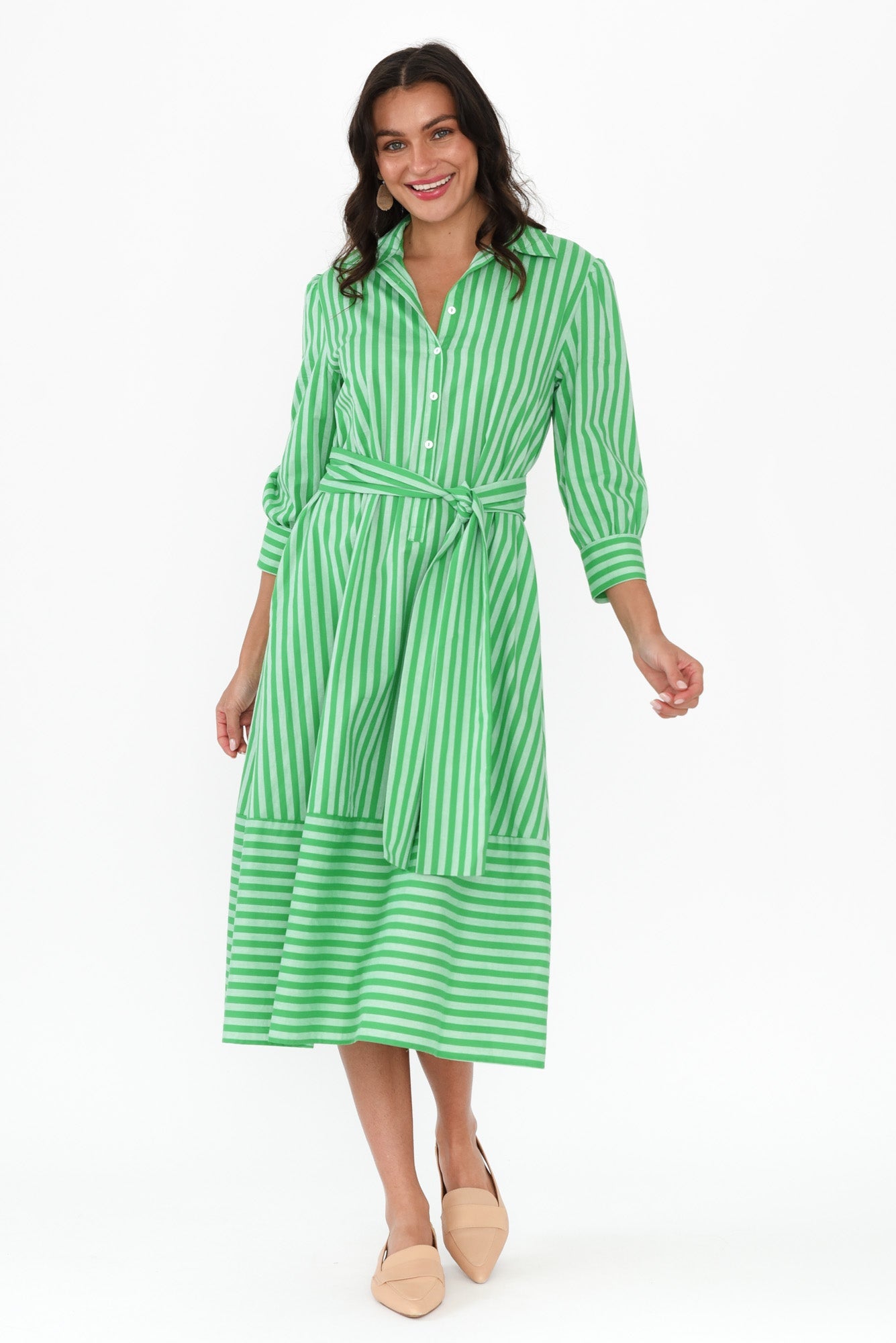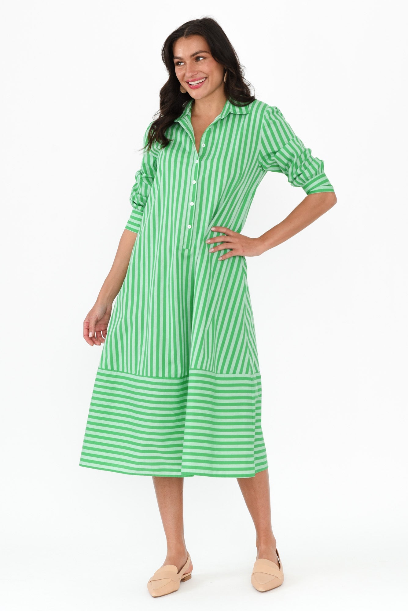Martha Green Stripe Cotton Dress