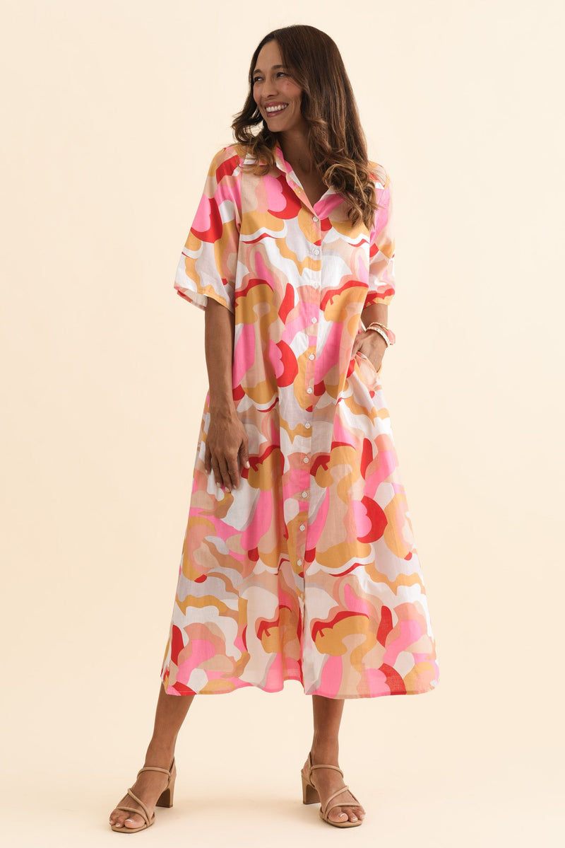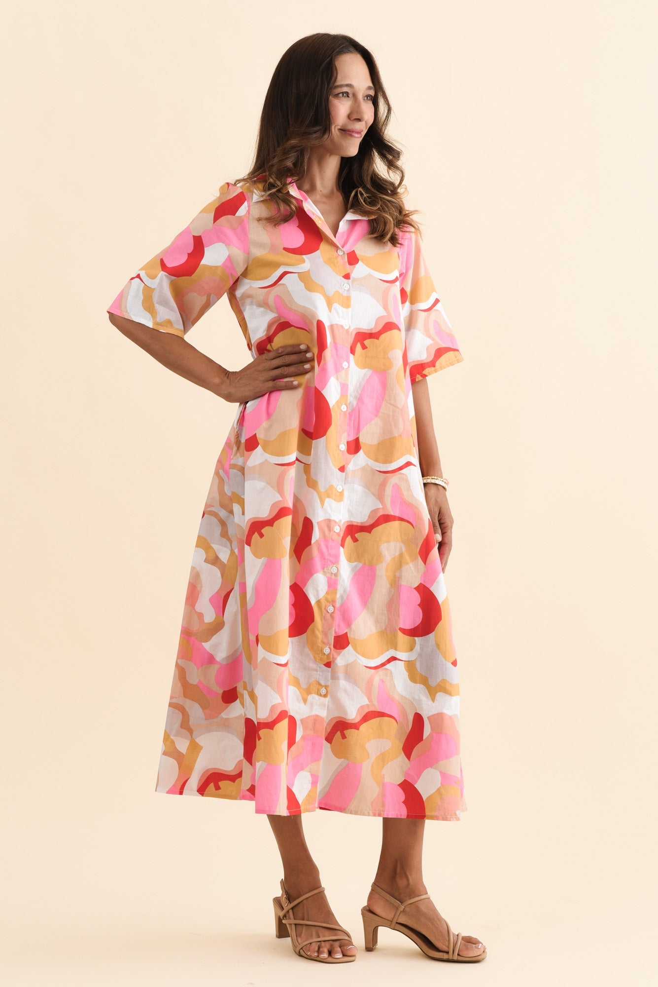 MEDA BEIGE FLORAL COTTON TIE DRESS