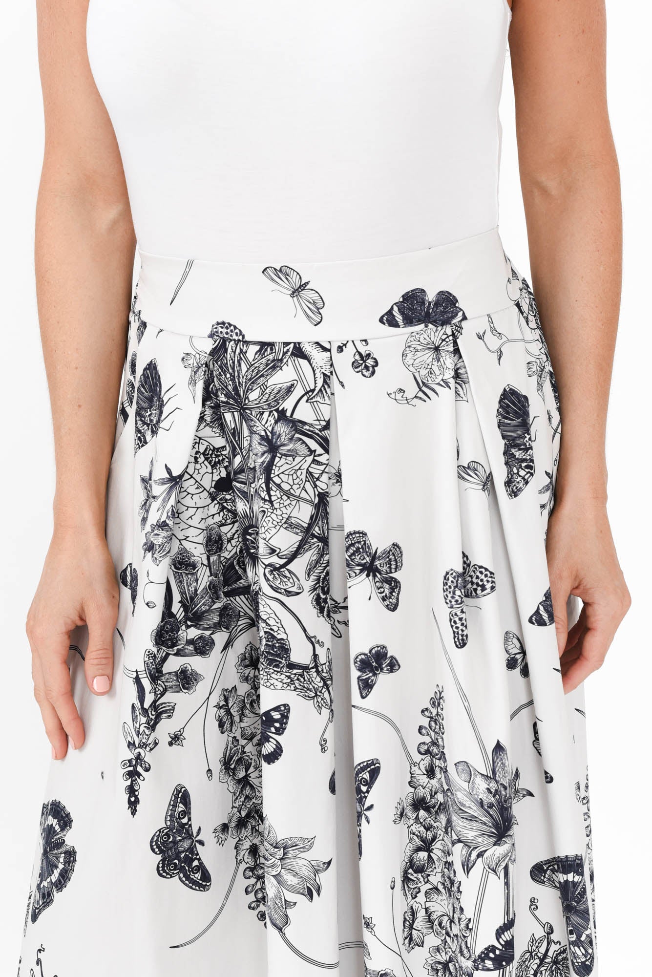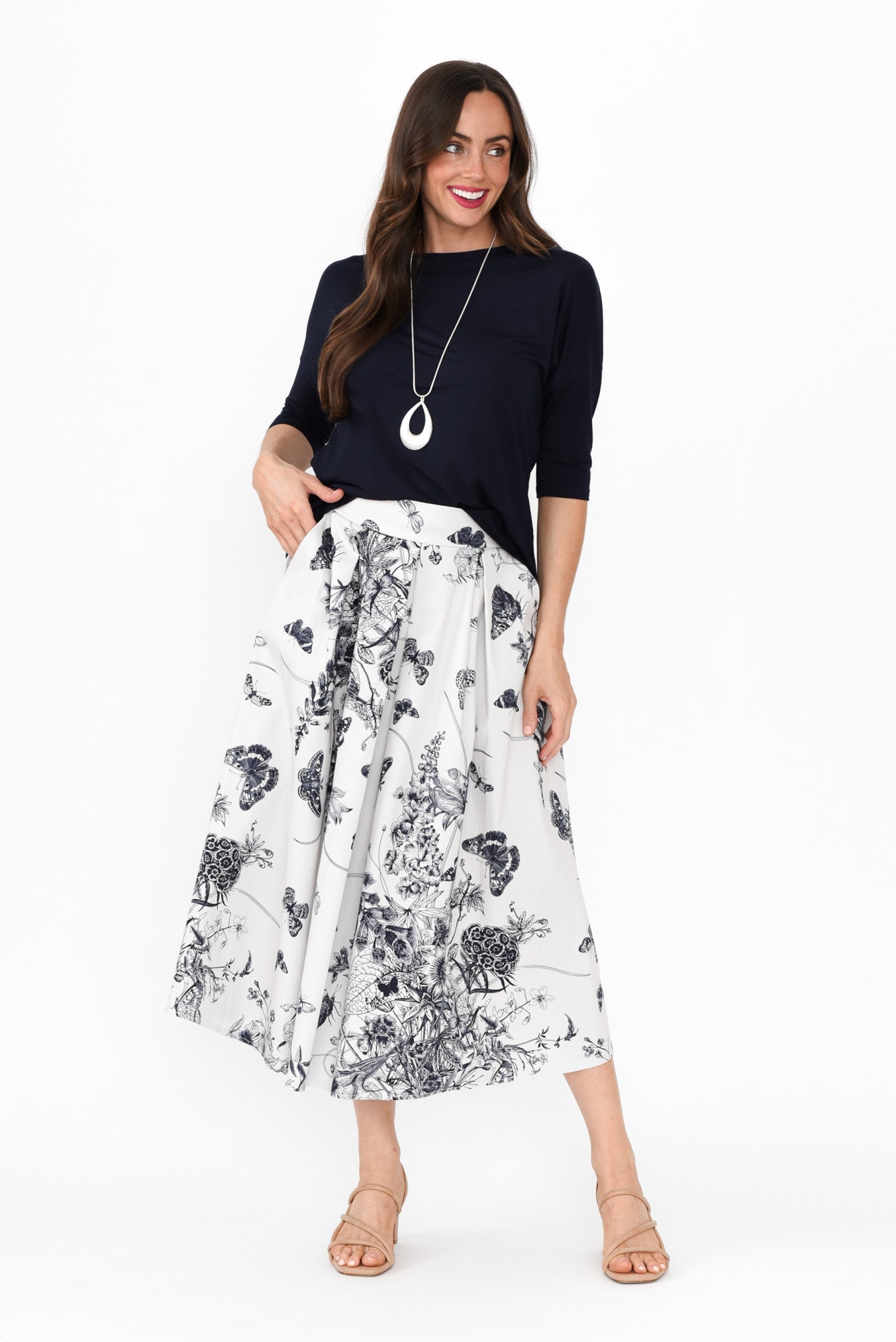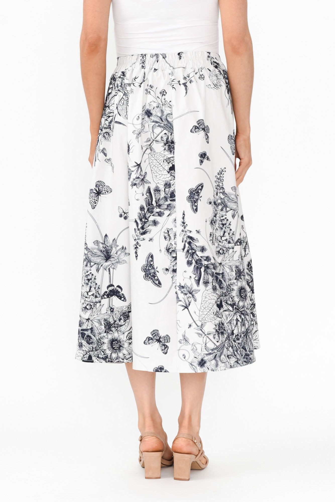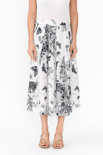 Merridy Navy Garden Cotton Skirt