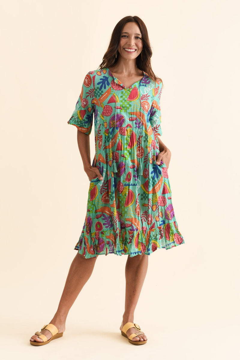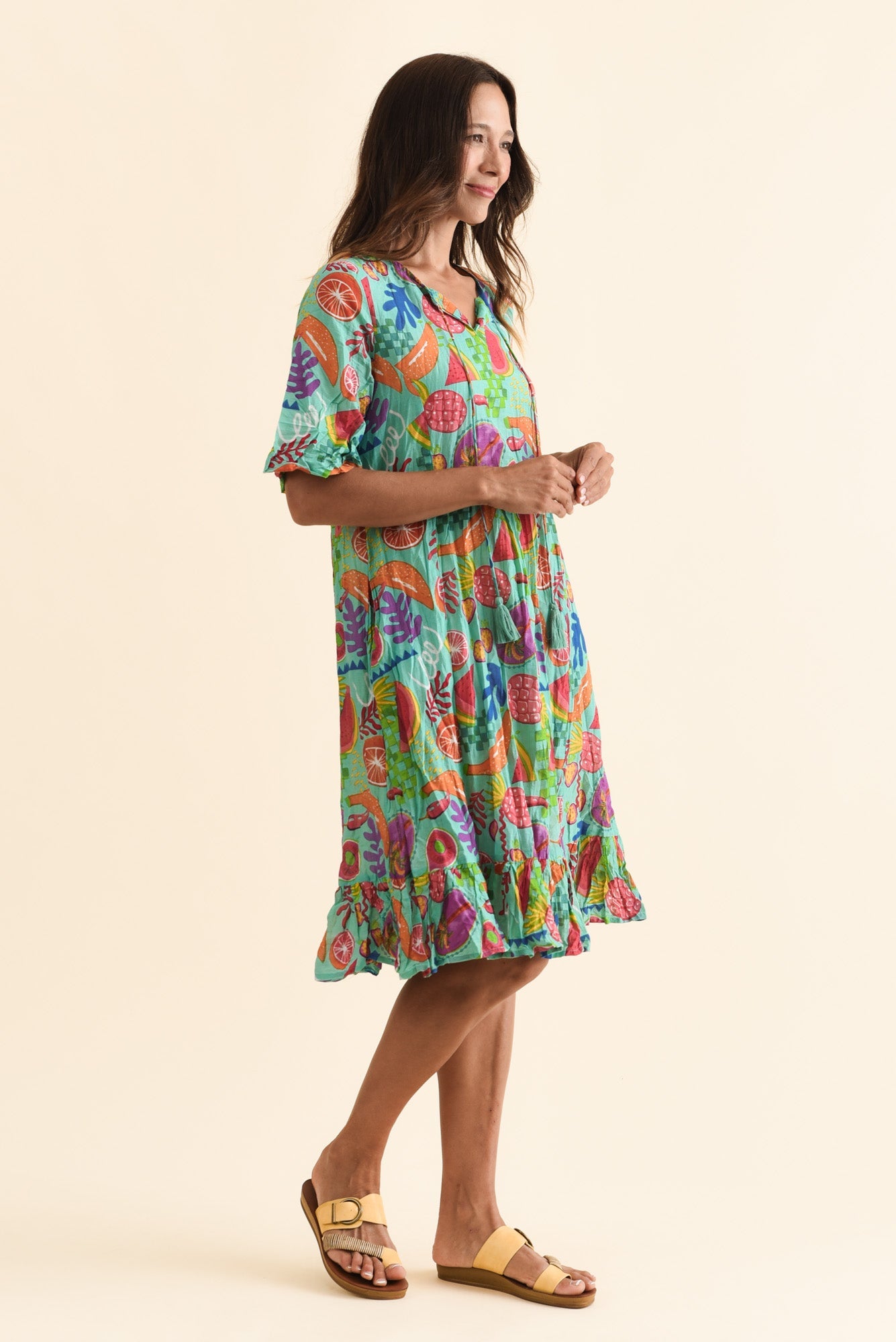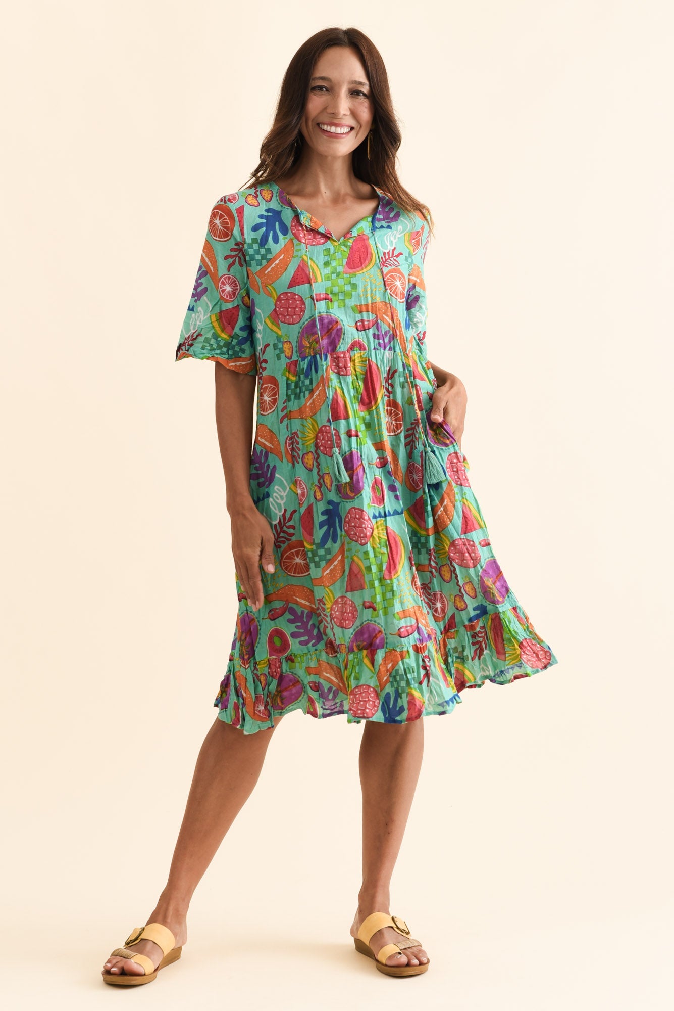 MILA BLUE GARDEN CRINKLE COTTON DRESS