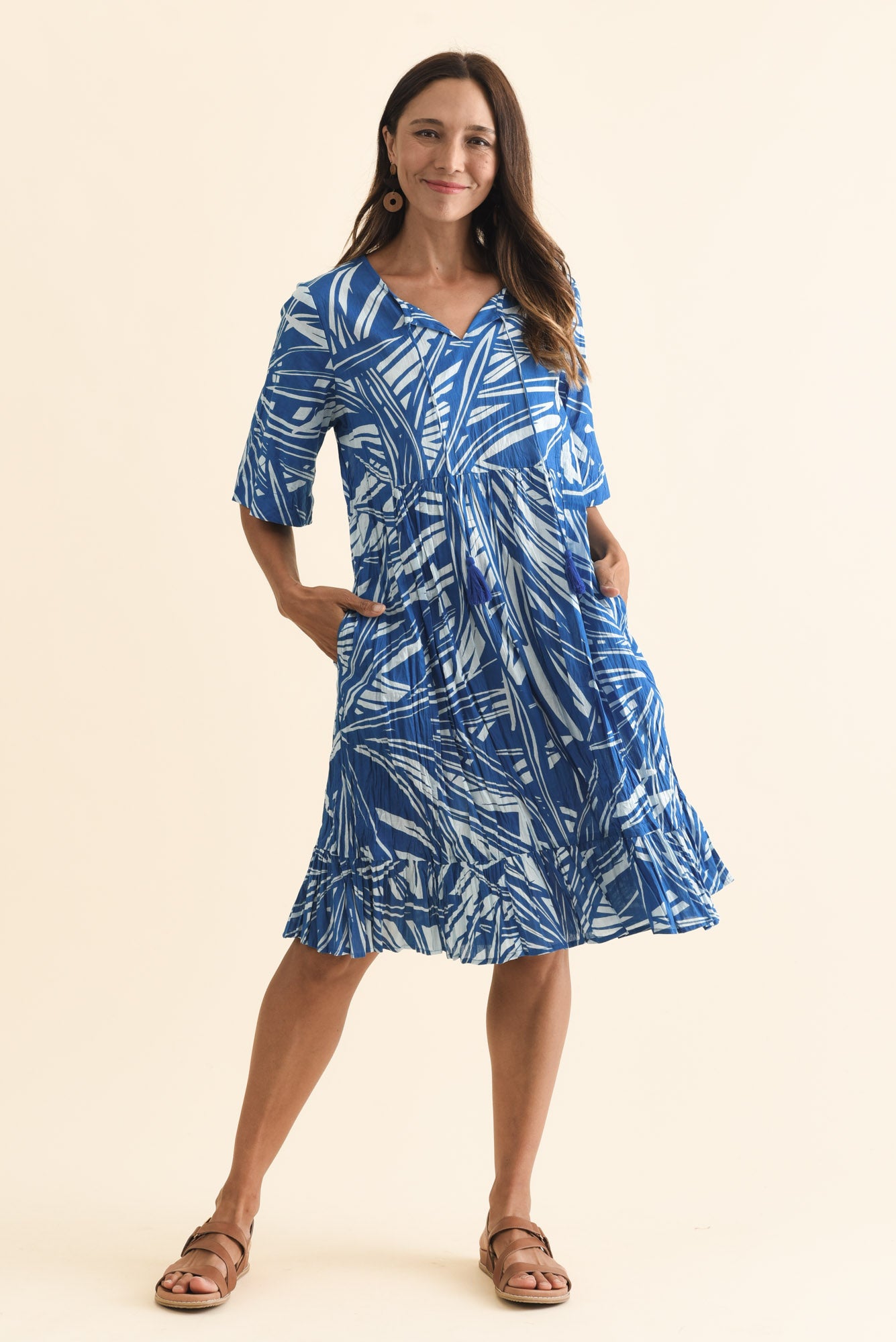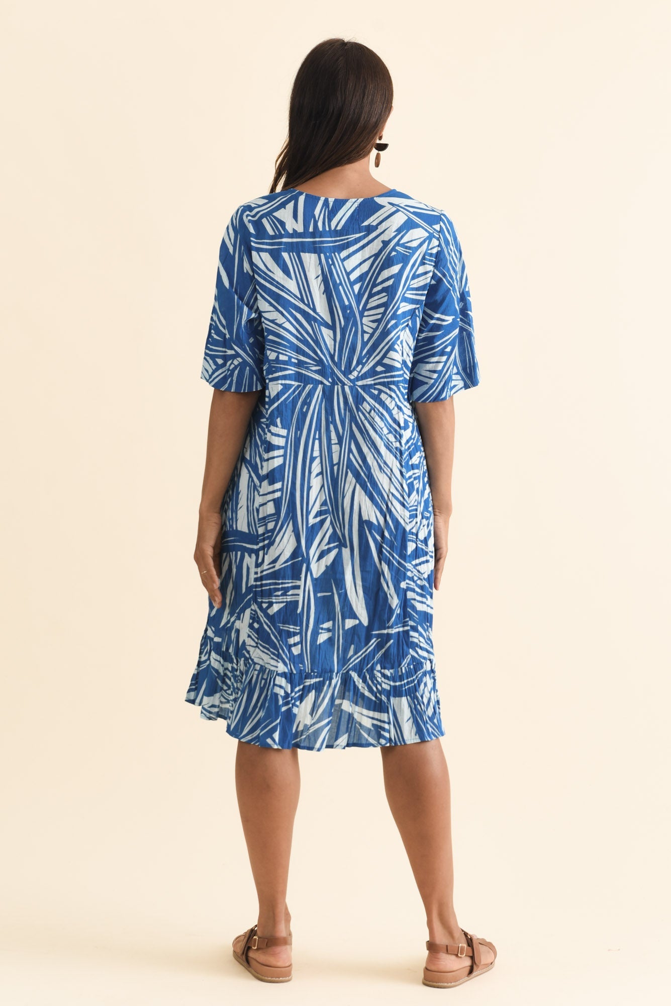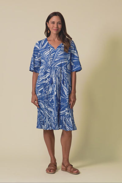 Mila Blue Leaf Crinkle Cotton Dress