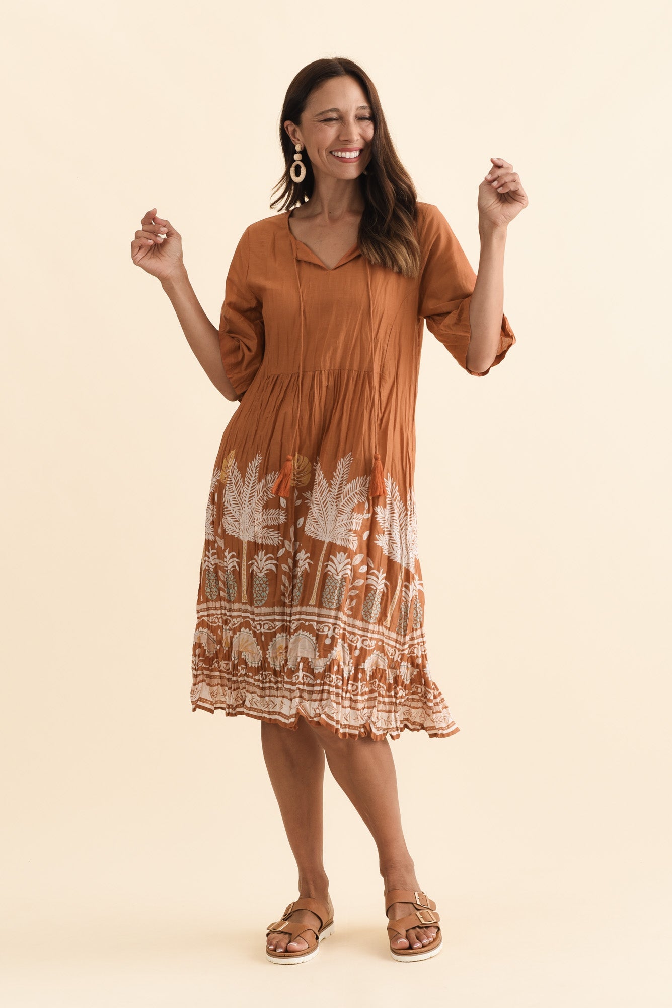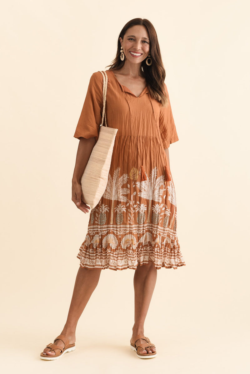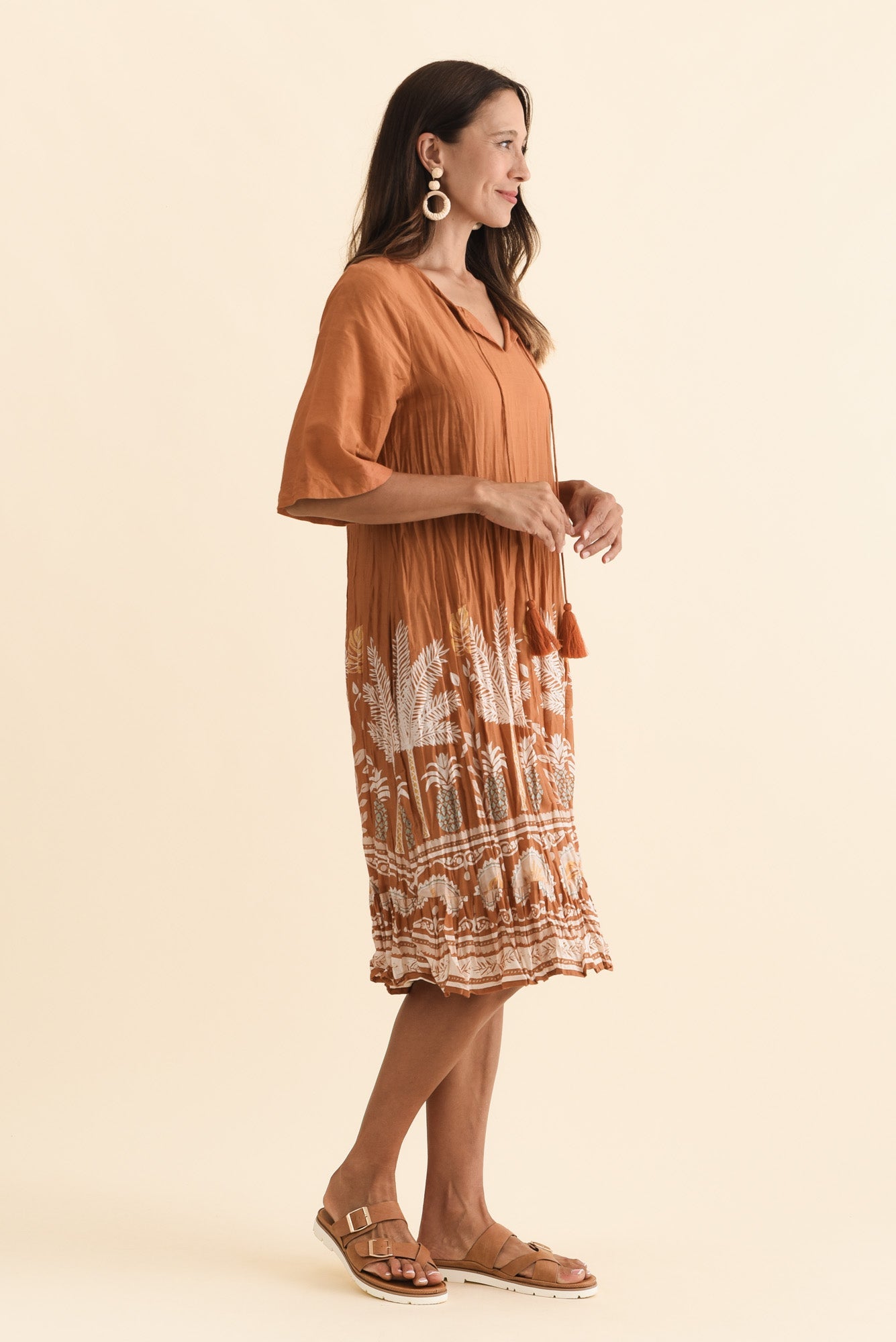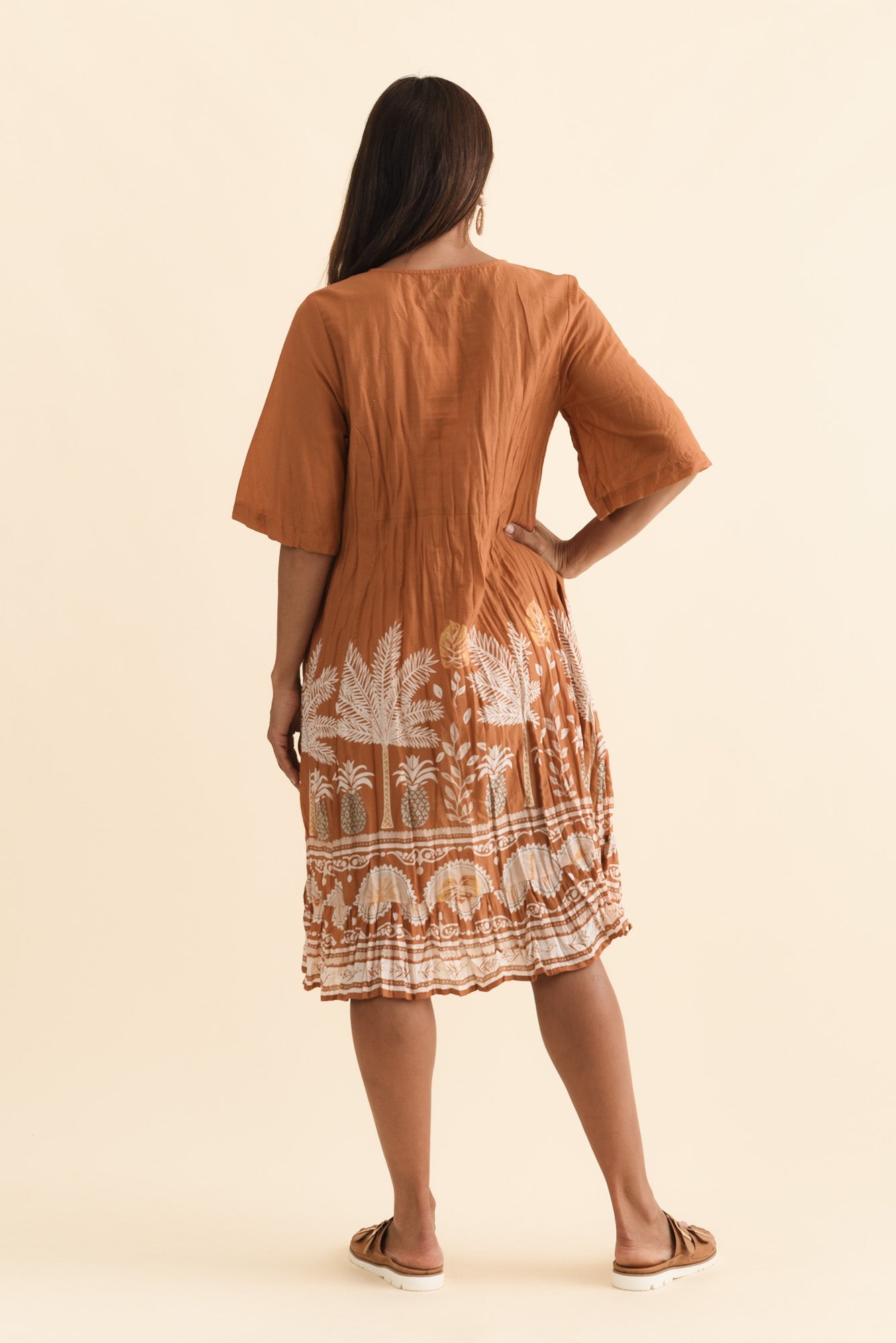 Mila Brown Beach Crinkle Cotton Dress