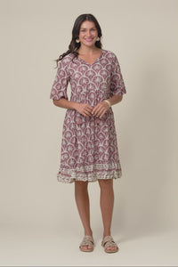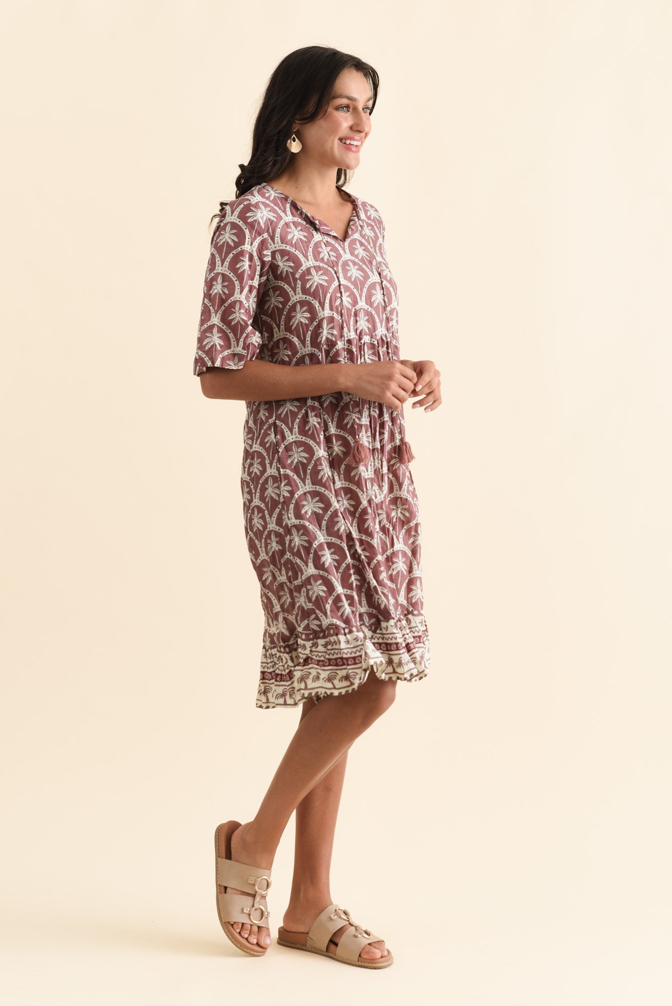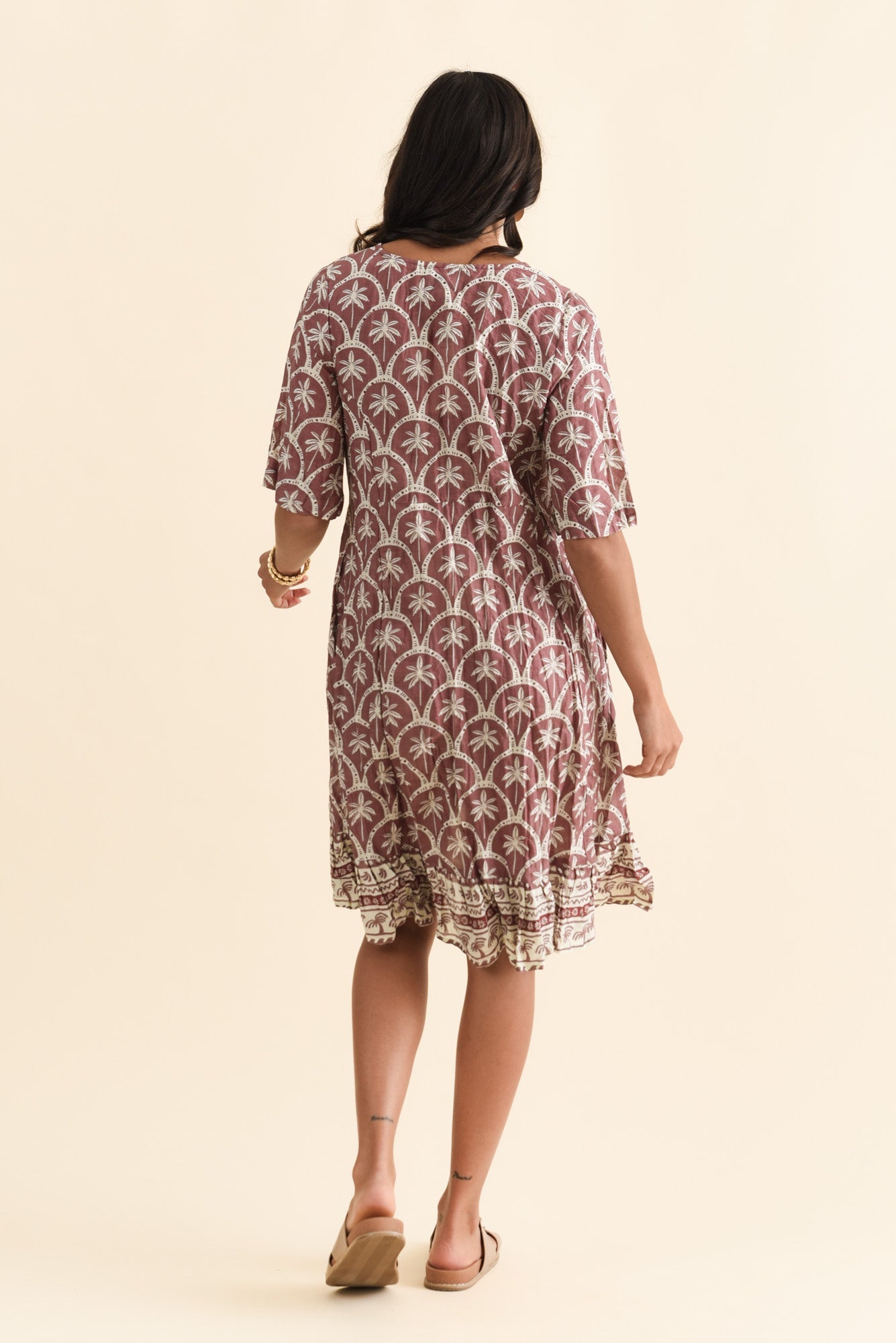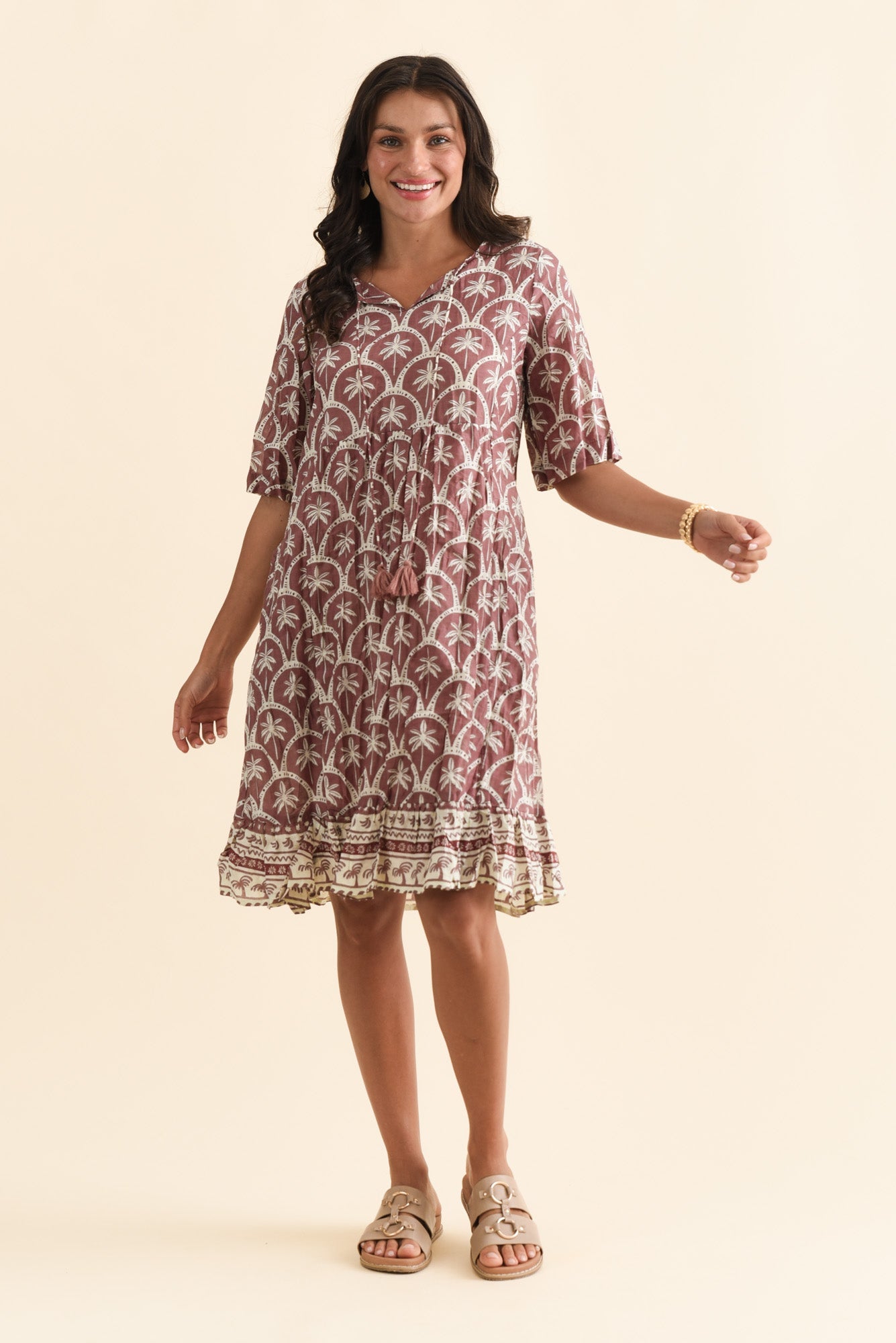 Mila Taupe Palm Crinkle Cotton Dress