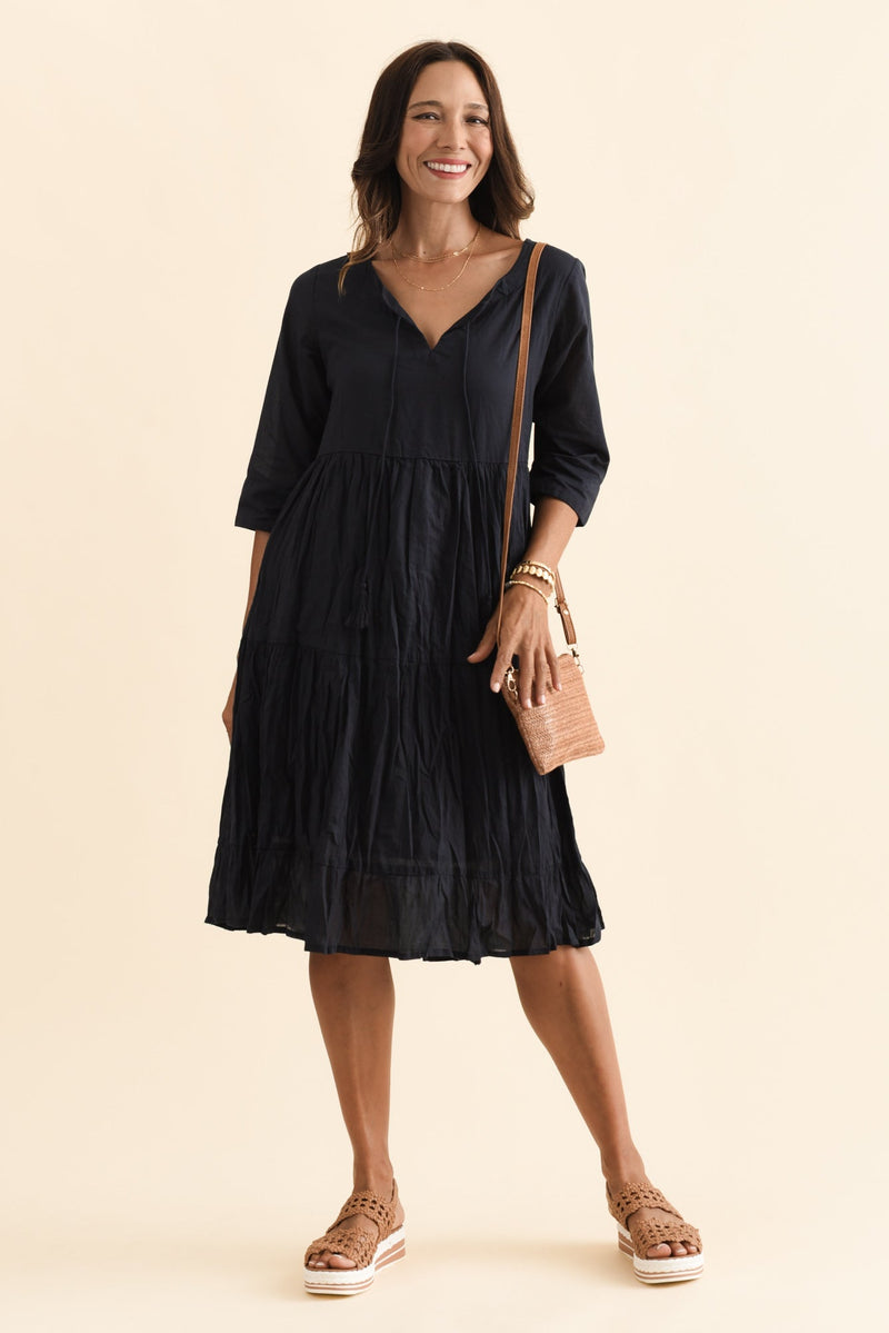 MILANA NAVY CRINKLE COTTON DRESS