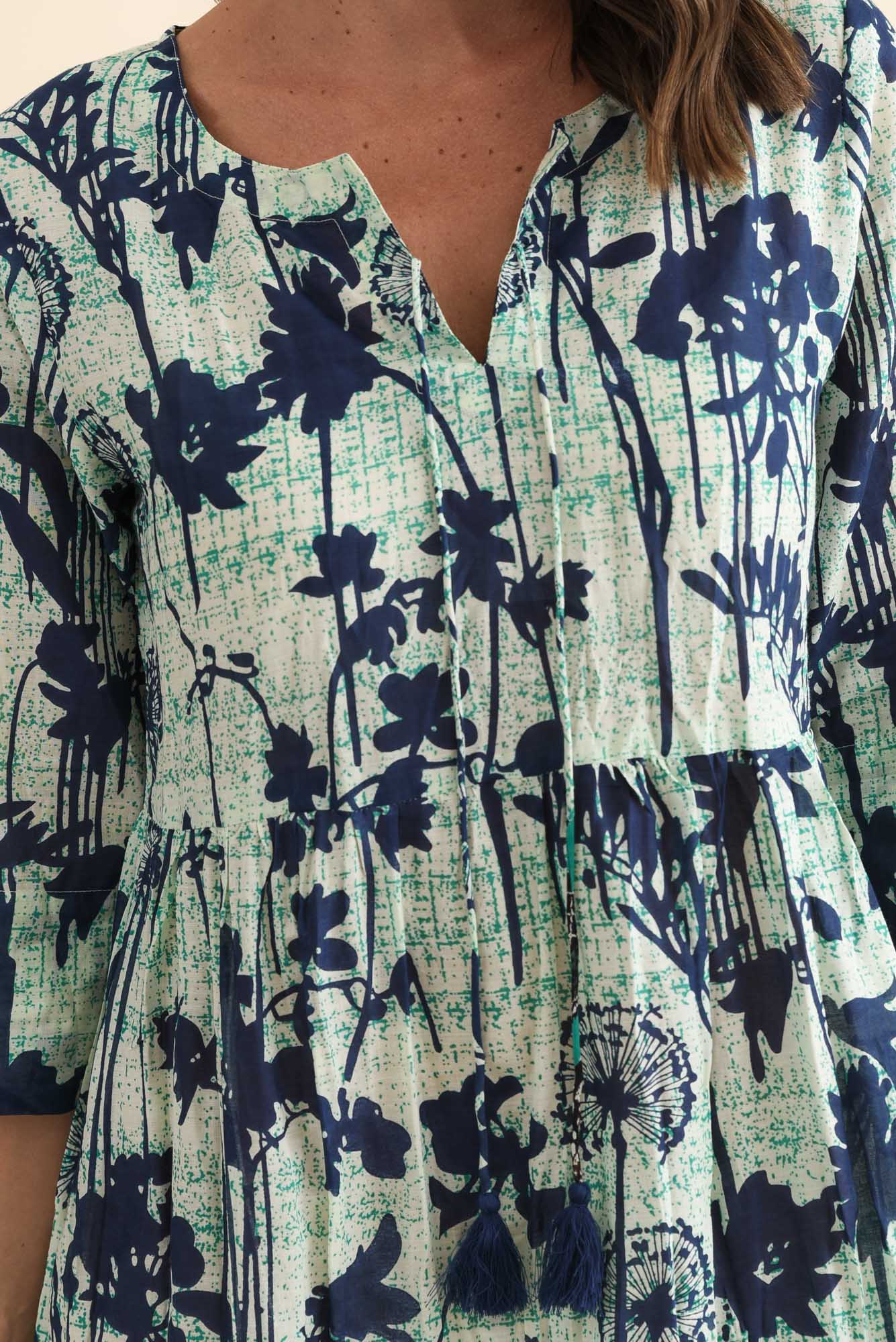 Milana Navy Dandelion Crinkle Cotton Dress
