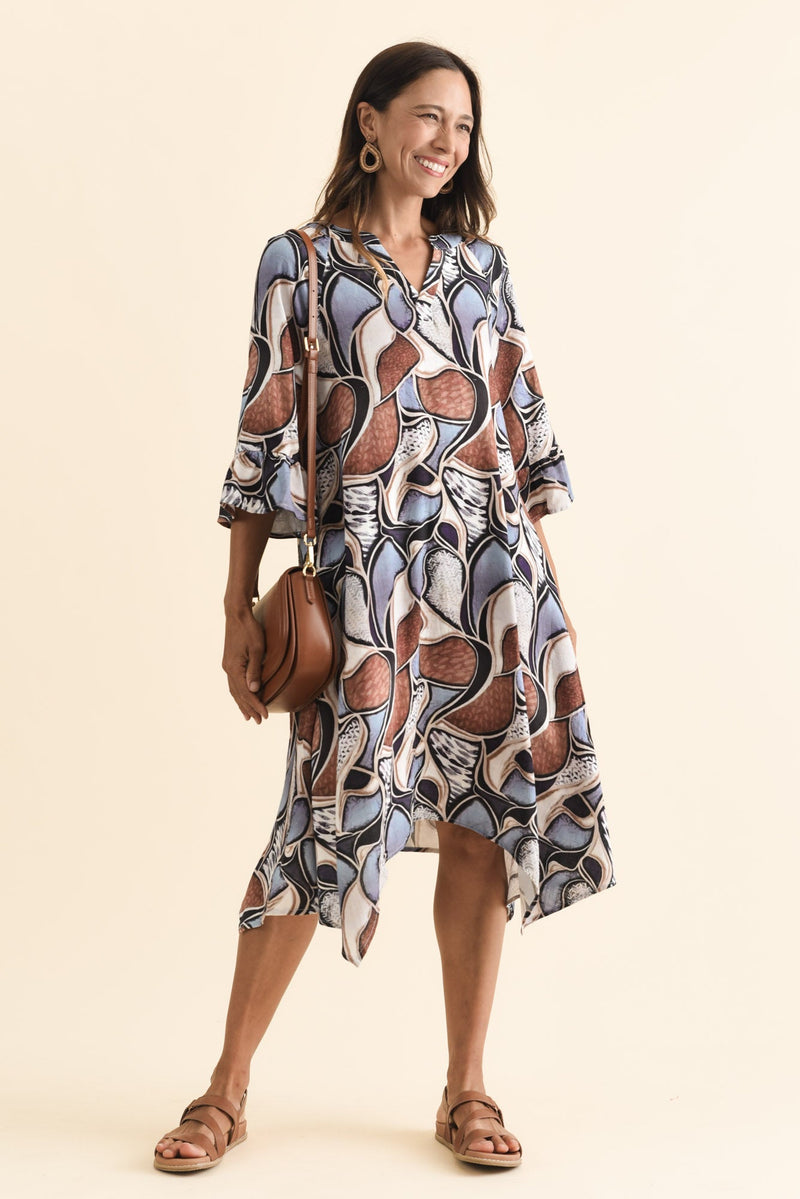 MILLICENT BLUE ABSTRACT LINEN COTTON DRESS
