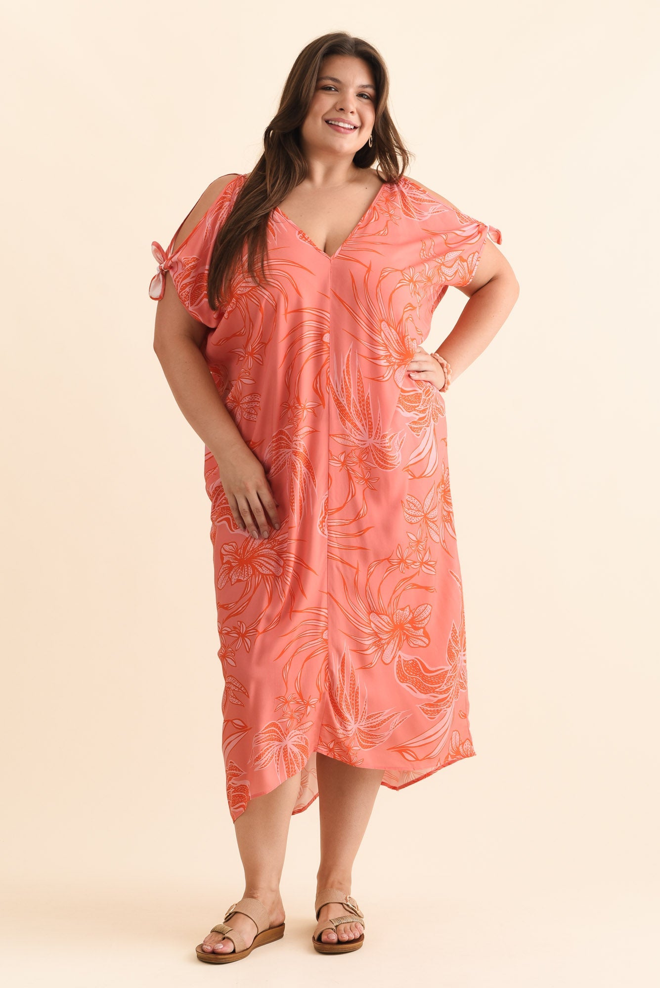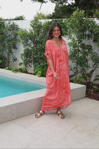 Miranda Pink Botanical Cold Shoulder Kaftan