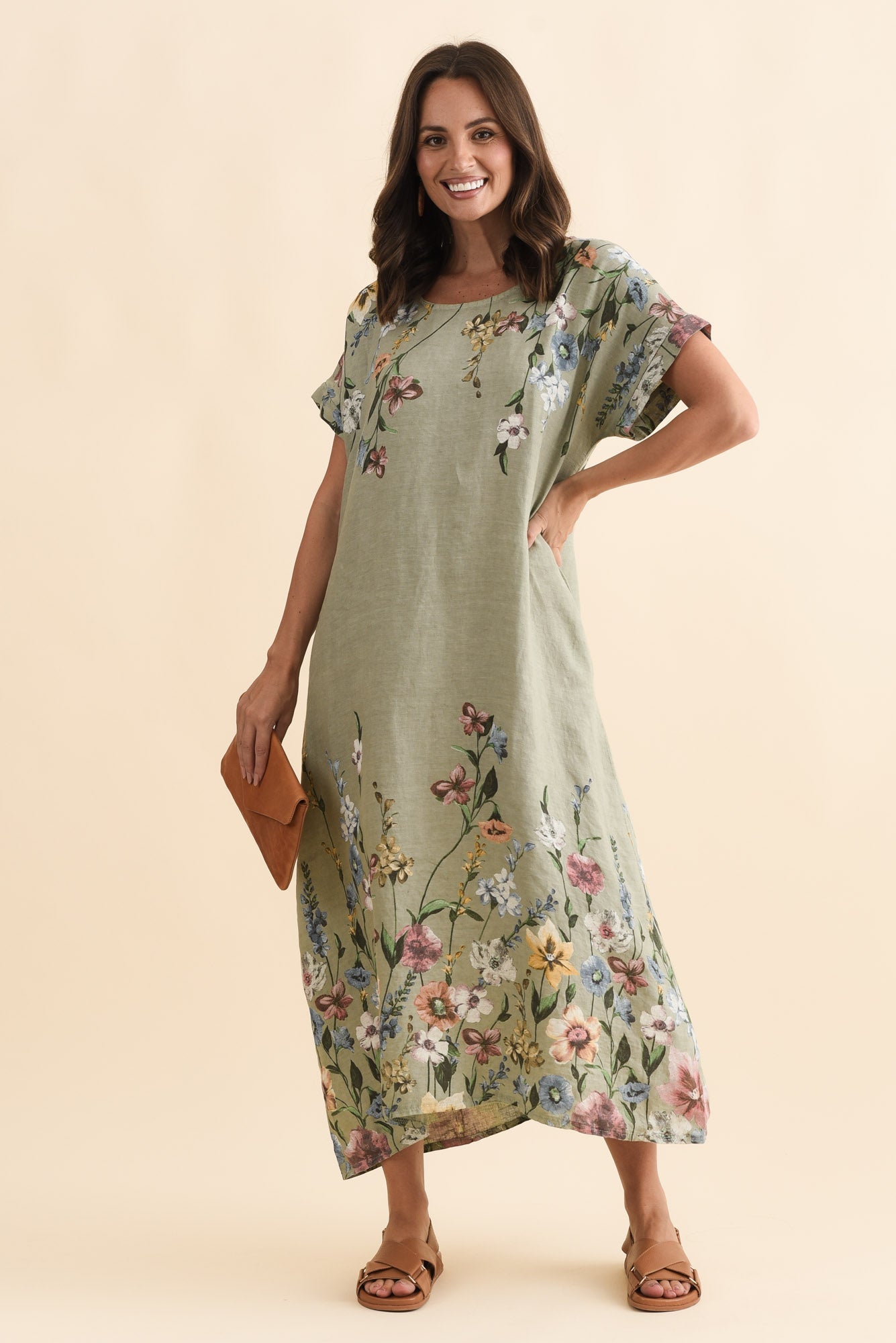 Morrison Sage Floral Linen Pocket Dress