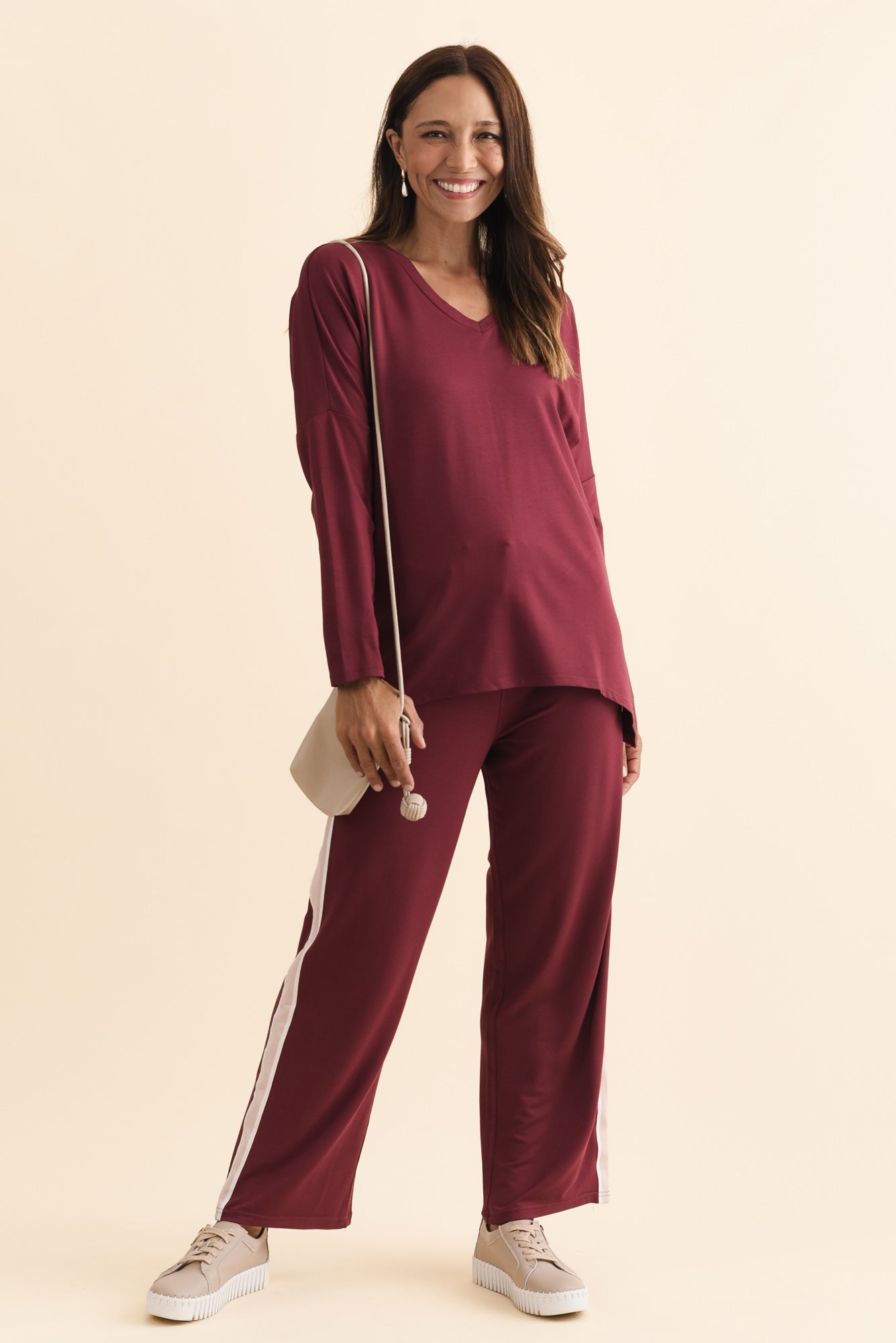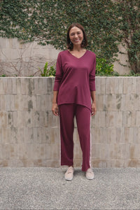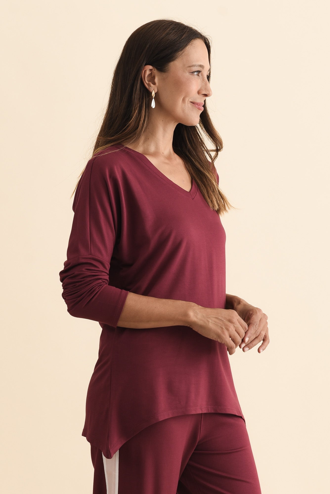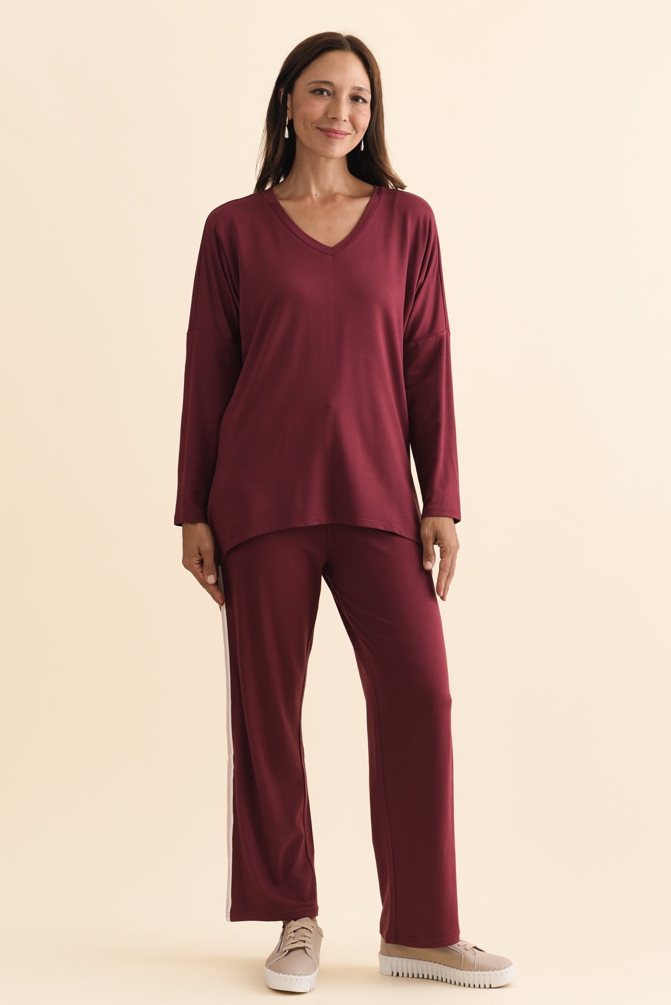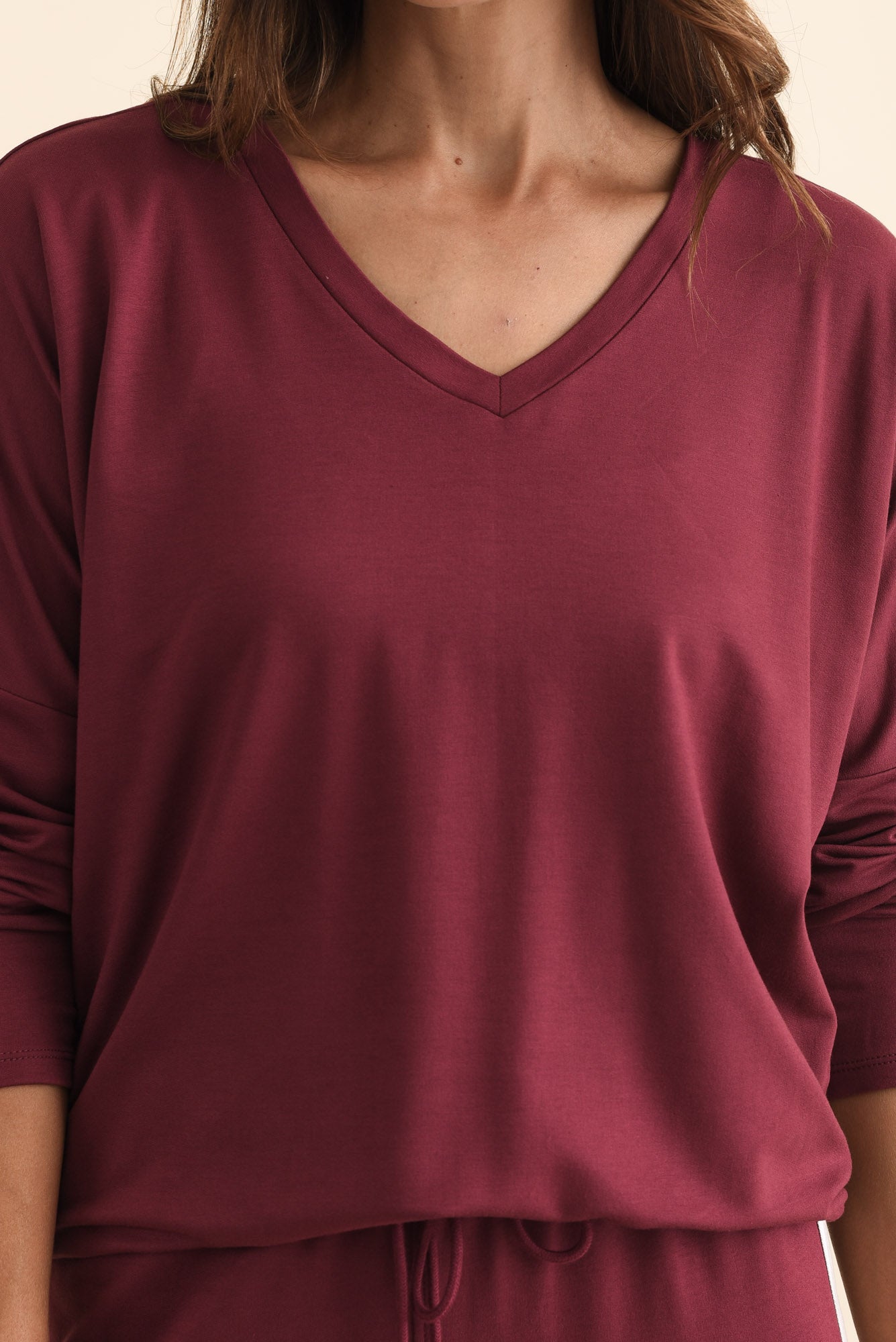 Munich Burgundy V Neck Top