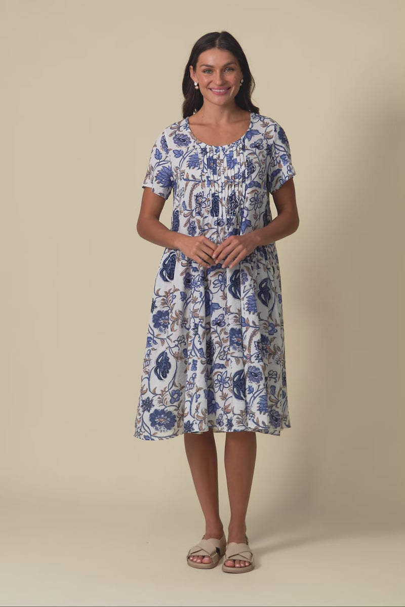MURANO BLUE BOTANICAL COTTON DRESS