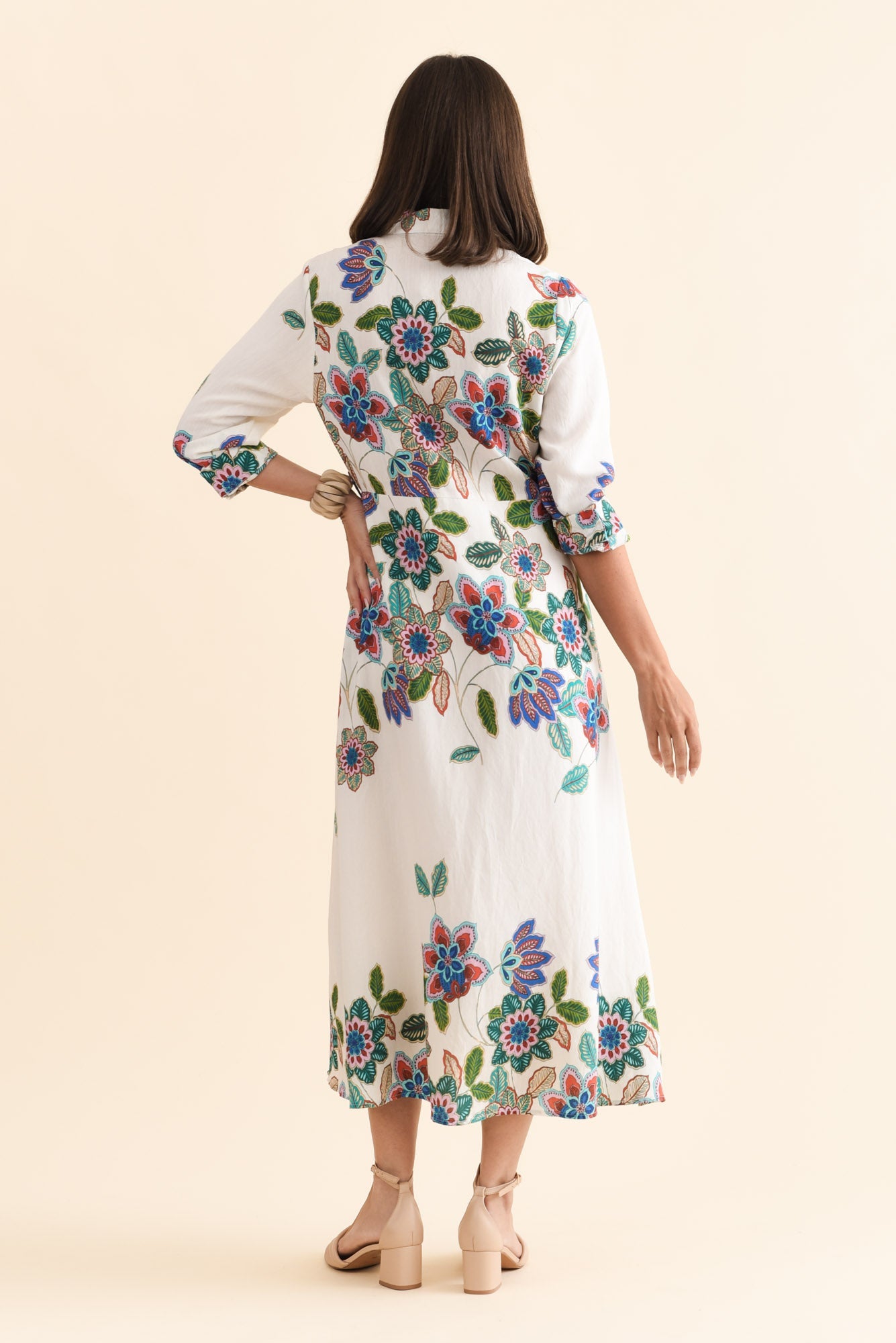 MYKA WHITE FLORAL LINEN COTTON SHIRT DRESS