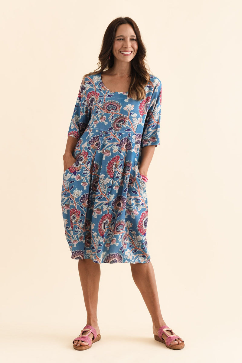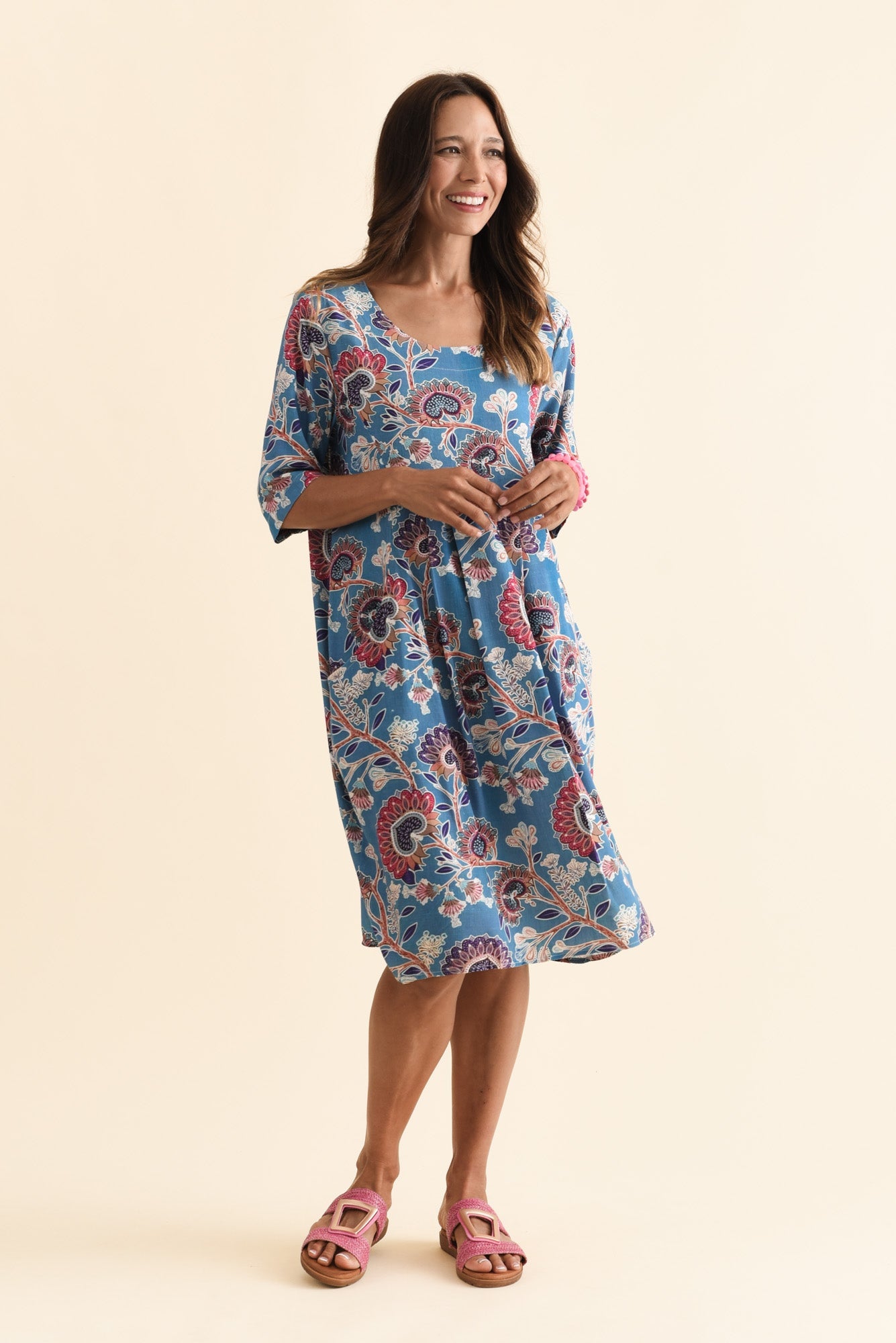 MYLEY BLUE GARDEN LINEN COTTON DRESS