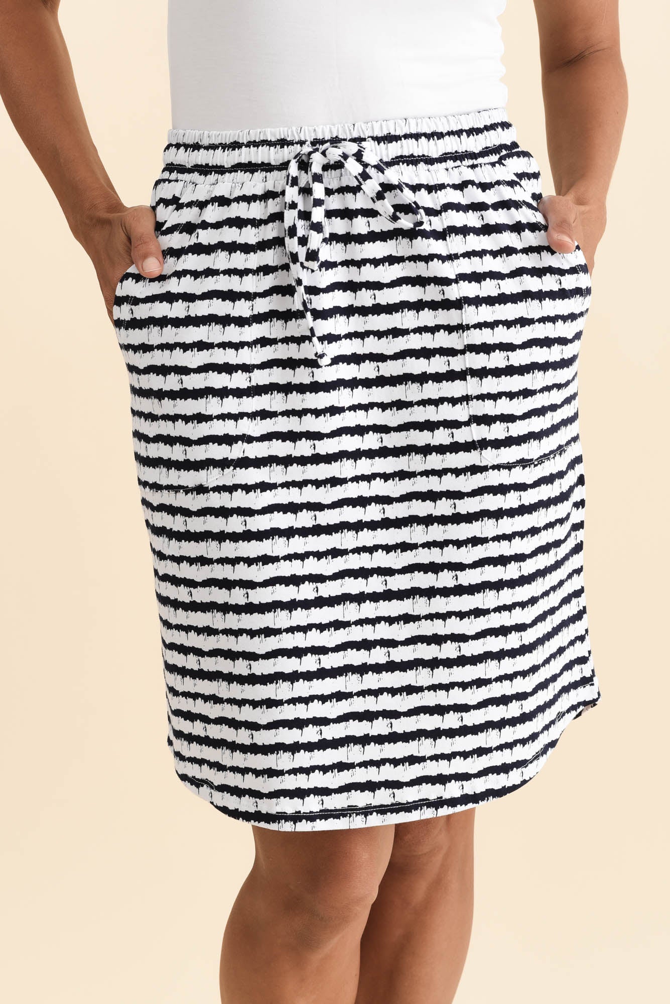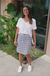 Navy Abstract Stripe Cotton Drawstring Skirt