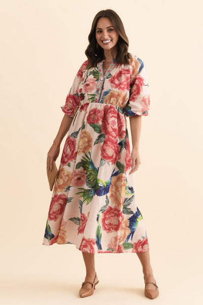 Nesmae Red Floral Tie Dress