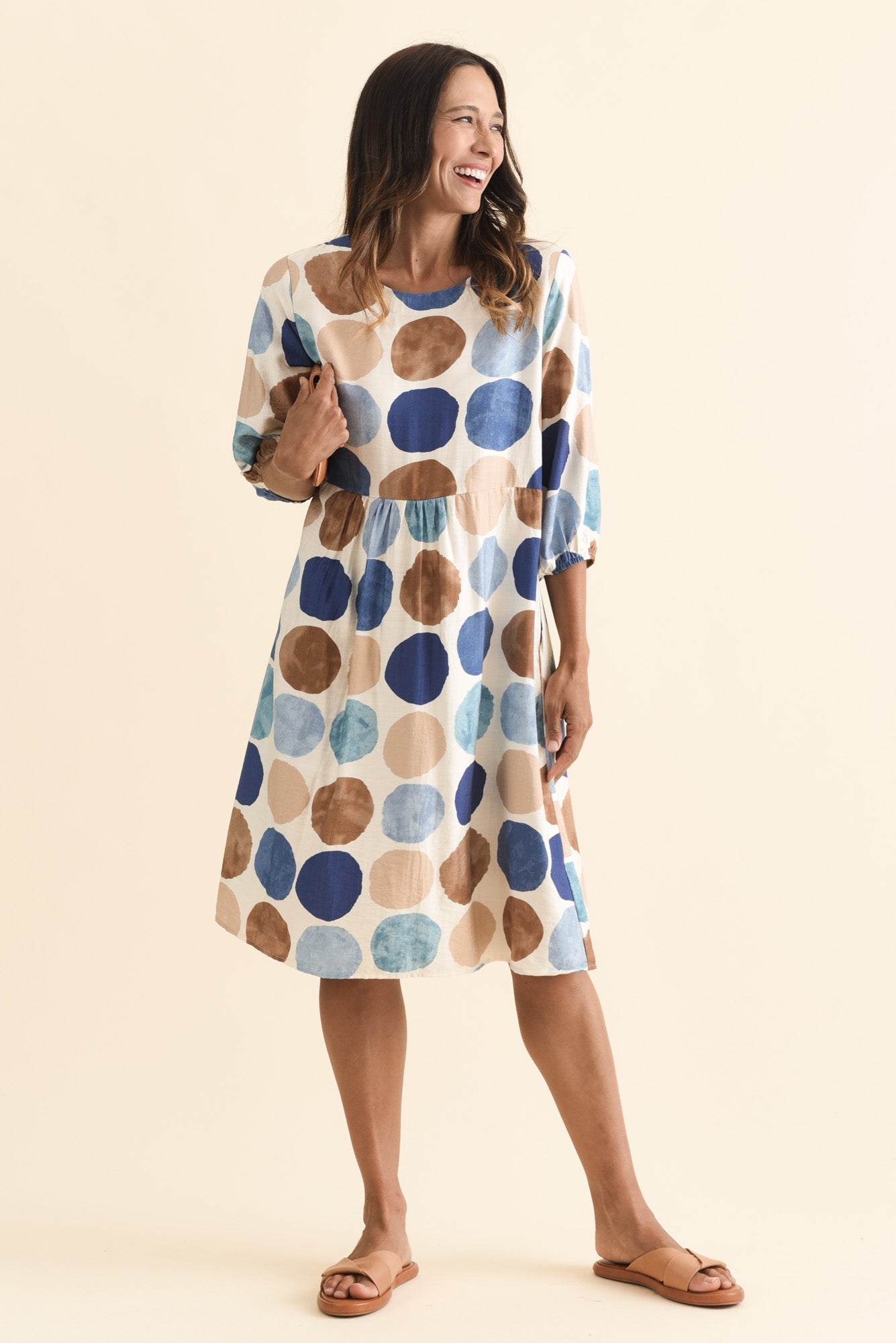 NICOLETTE NAVY SPOT COTTON SLEEVED DRESS