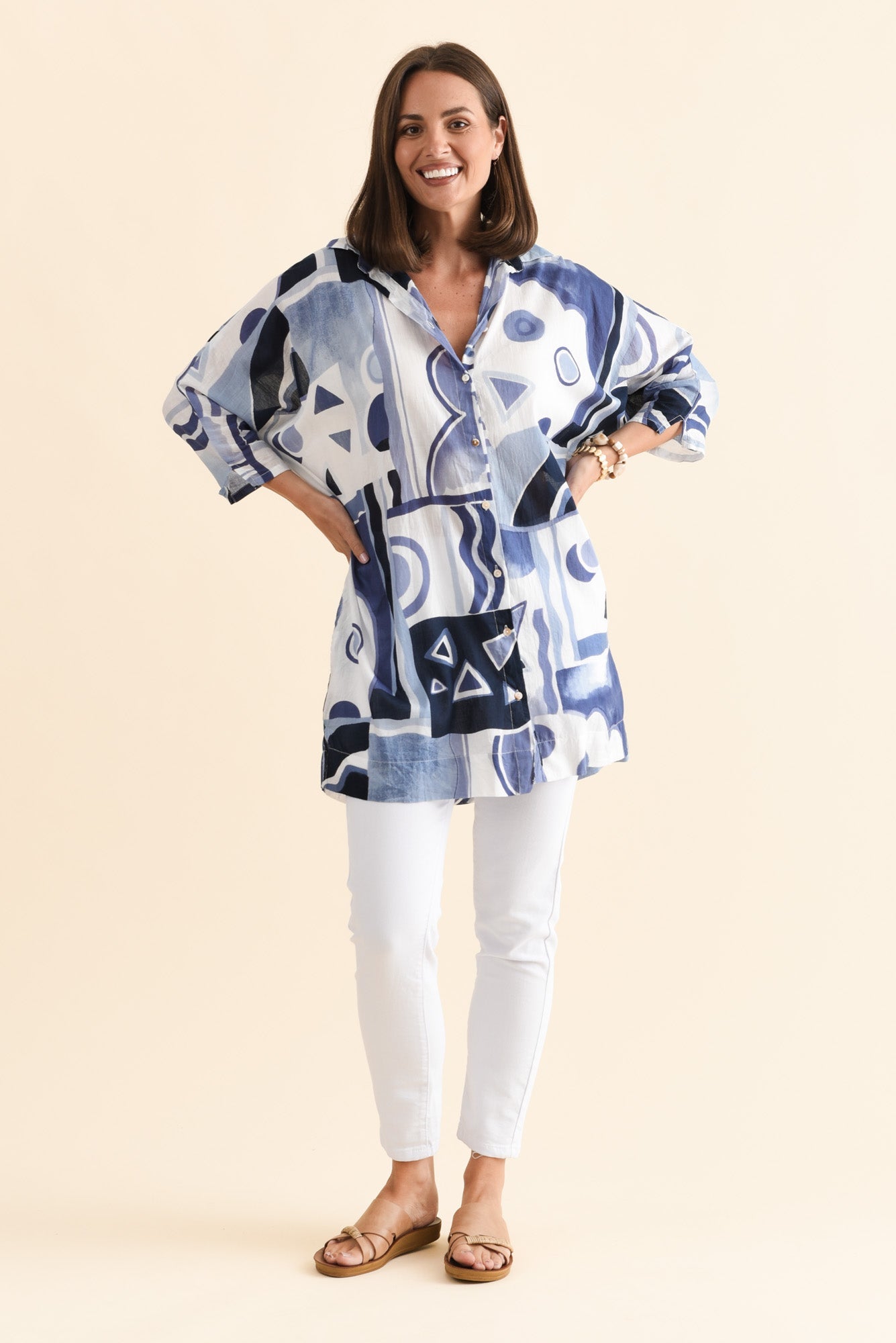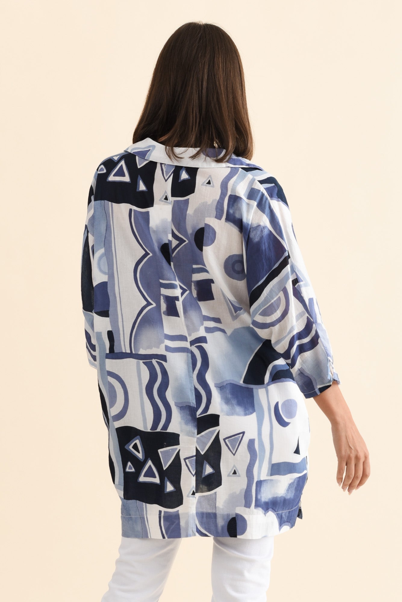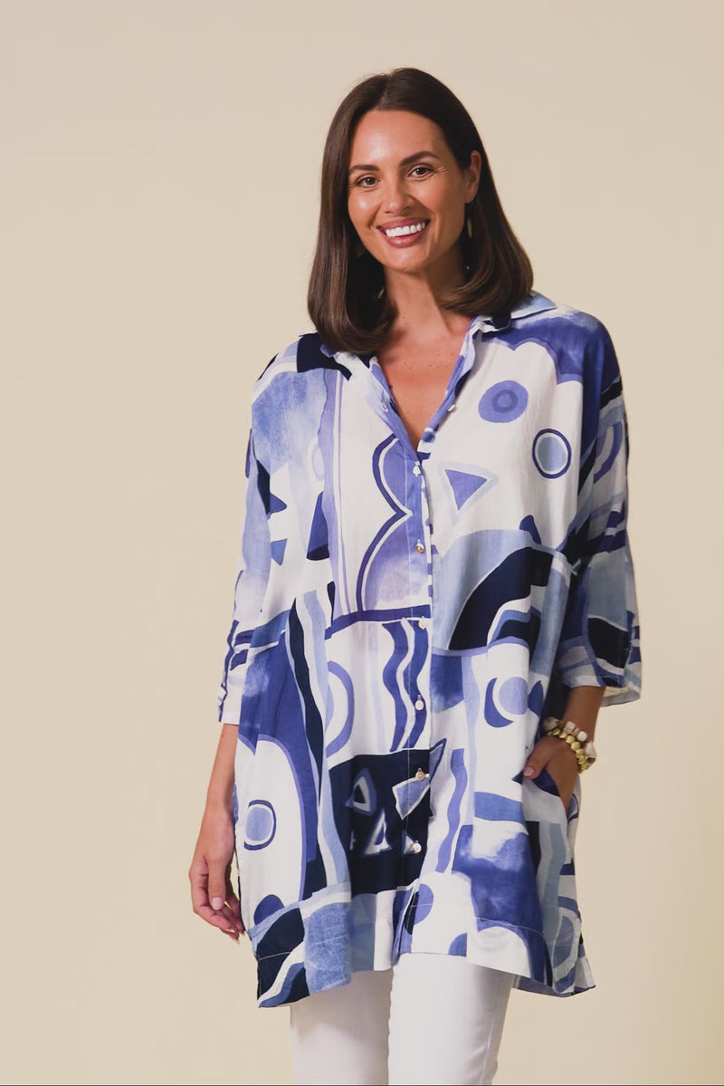NORLA BLUE ABSTRACT COTTON SHIRT