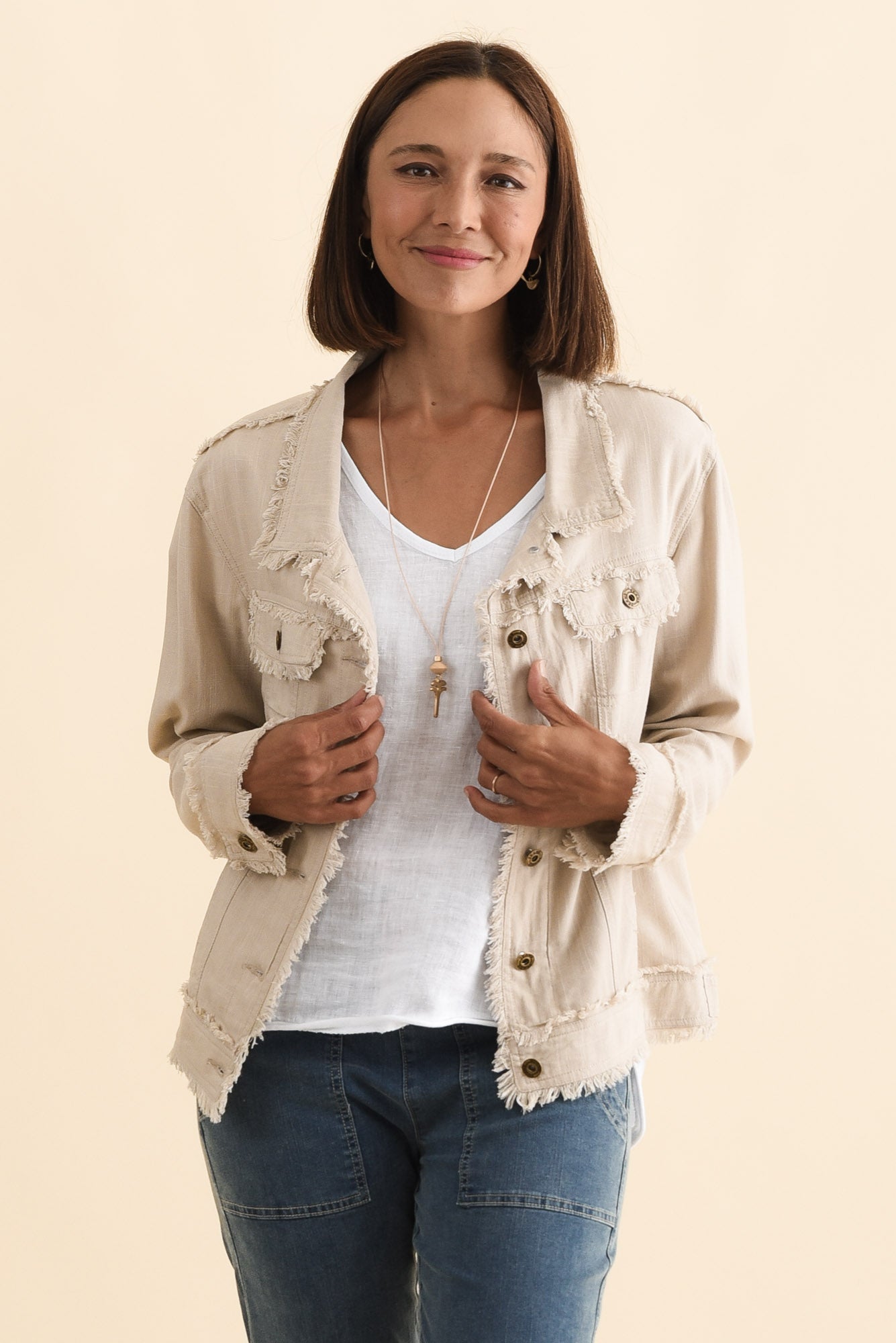 Oakley Beige Linen Frayed Jacket