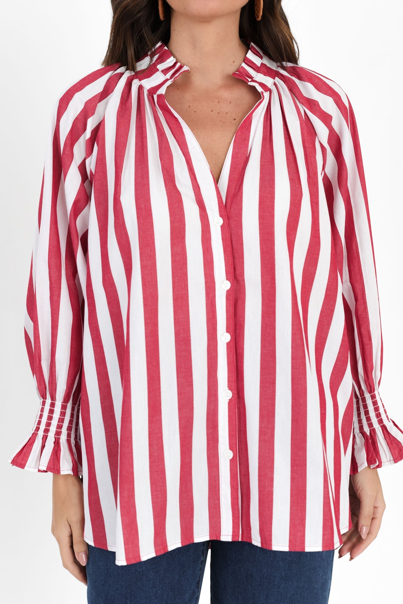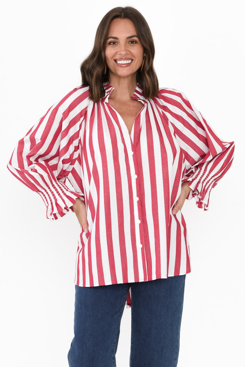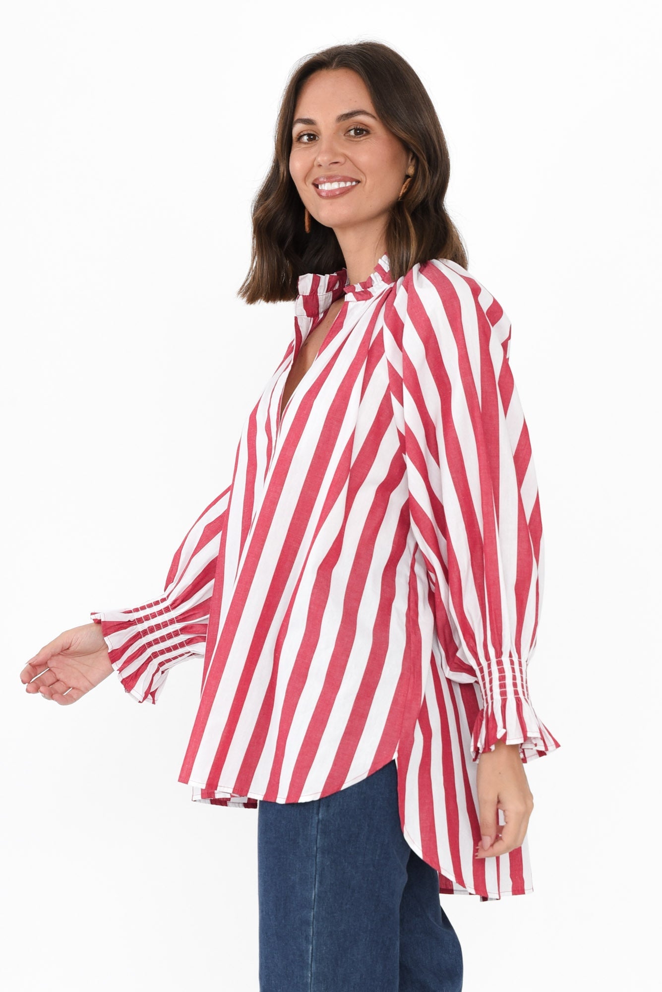 Olay Red Stripe Cotton Puff Sleeve Shirt