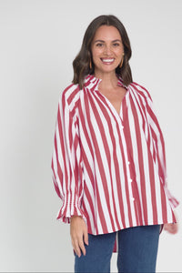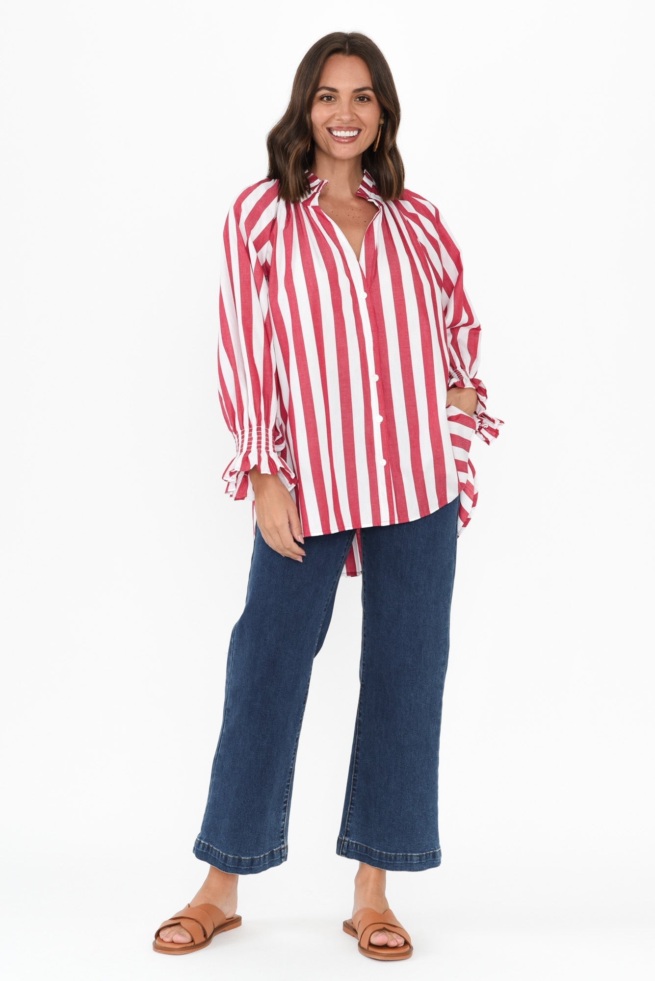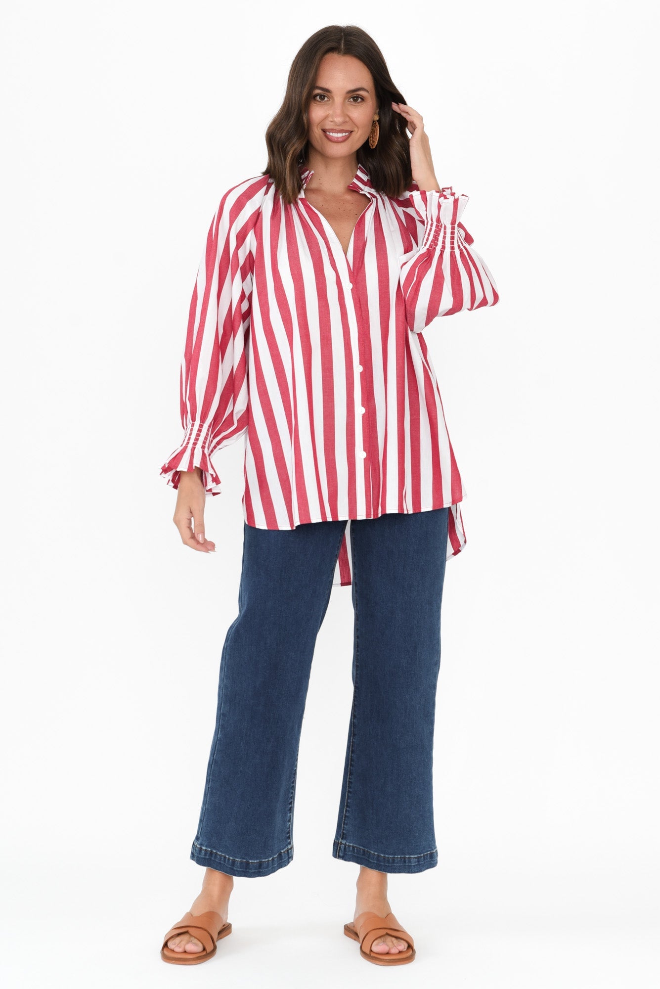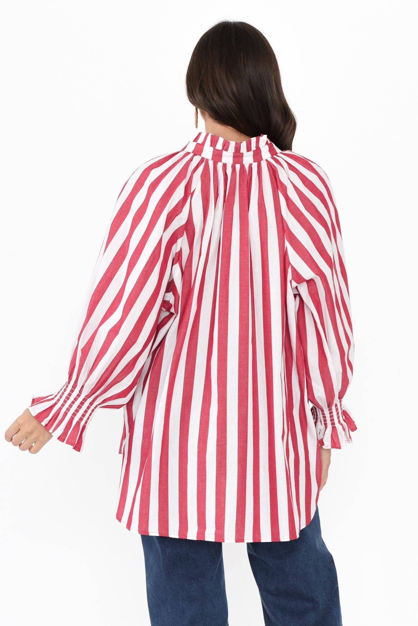Olay Red Stripe Cotton Puff Sleeve Shirt