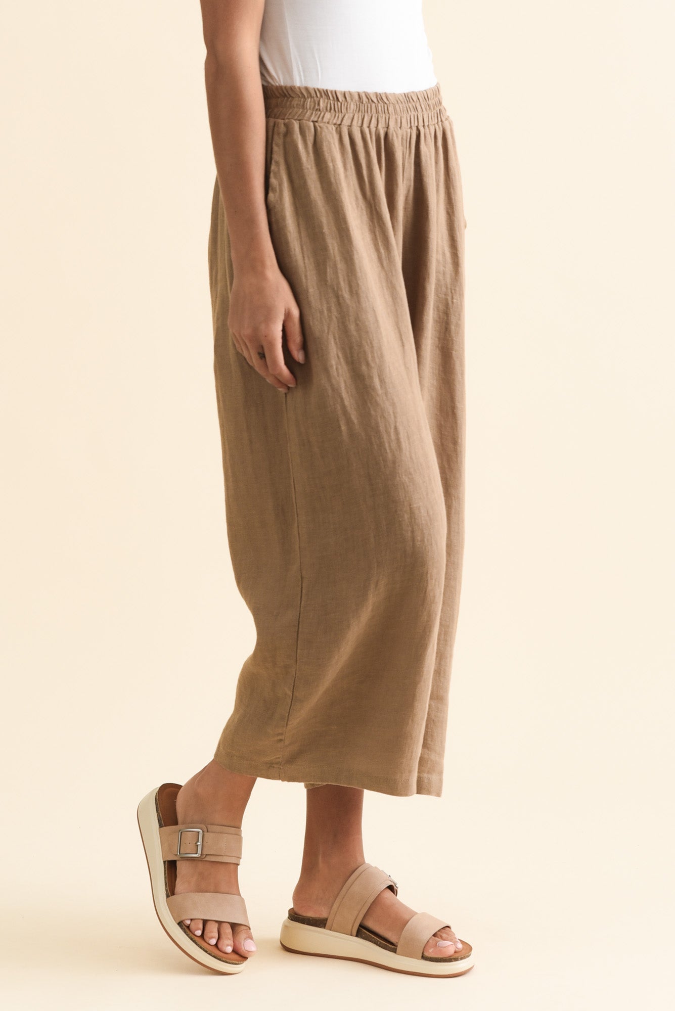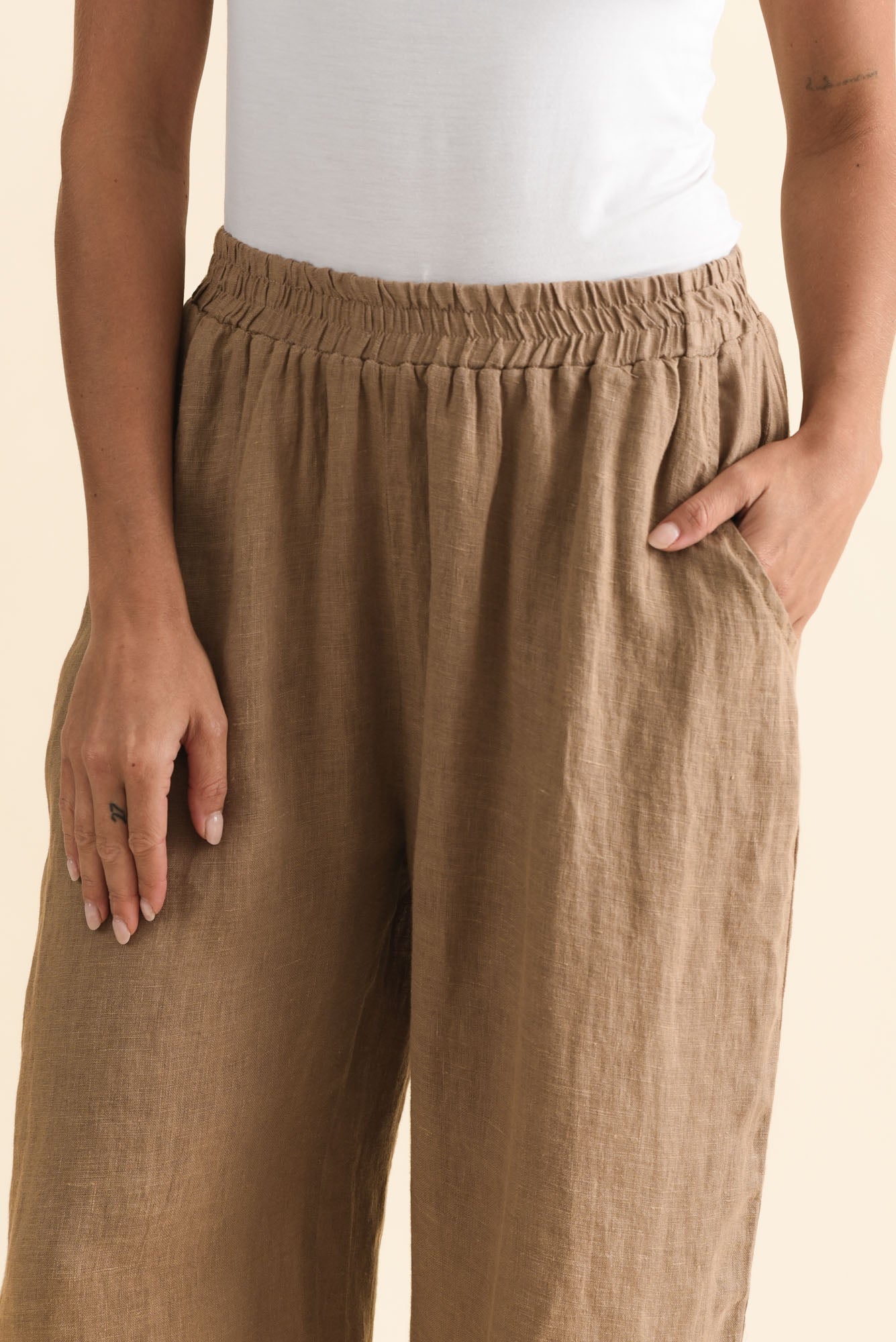 OLGA MOCHA LINEN WIDE LEG PANTS