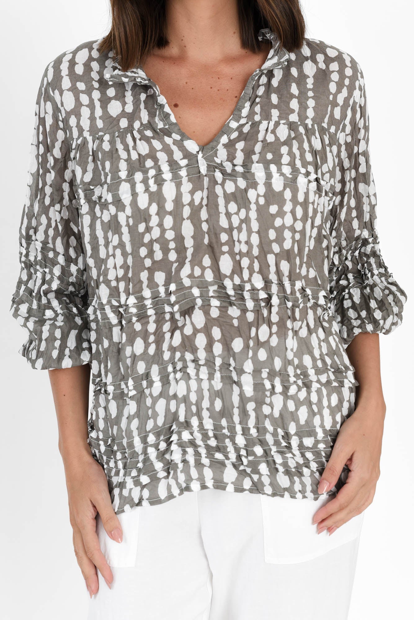 PALMER GREY SPECKLE COTTON LONG SLEEVE TOP