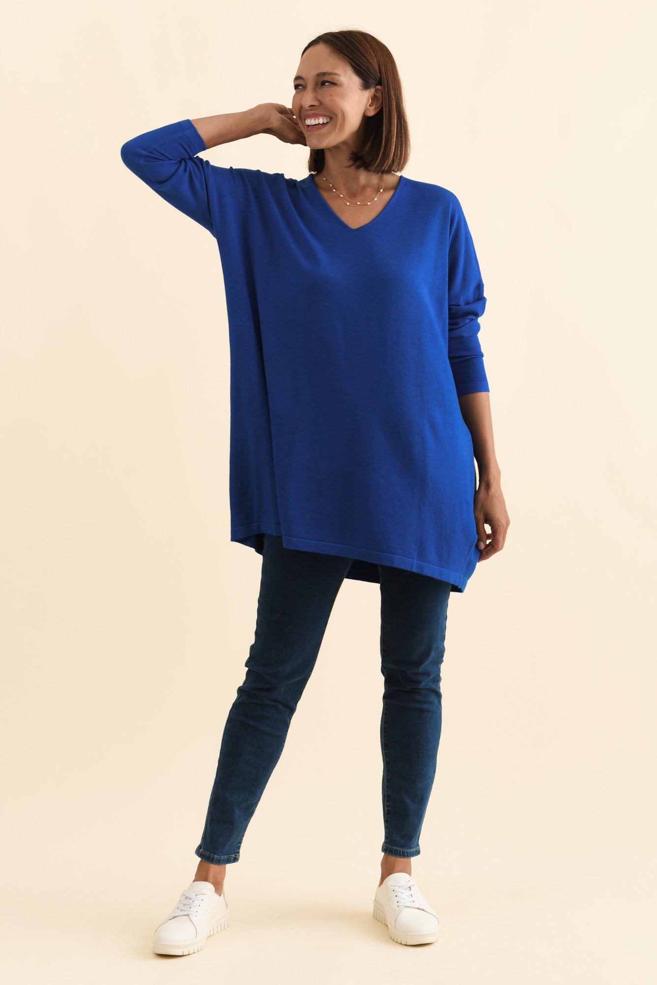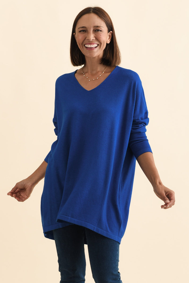 Piper Cobalt V Neck Knit Sweater