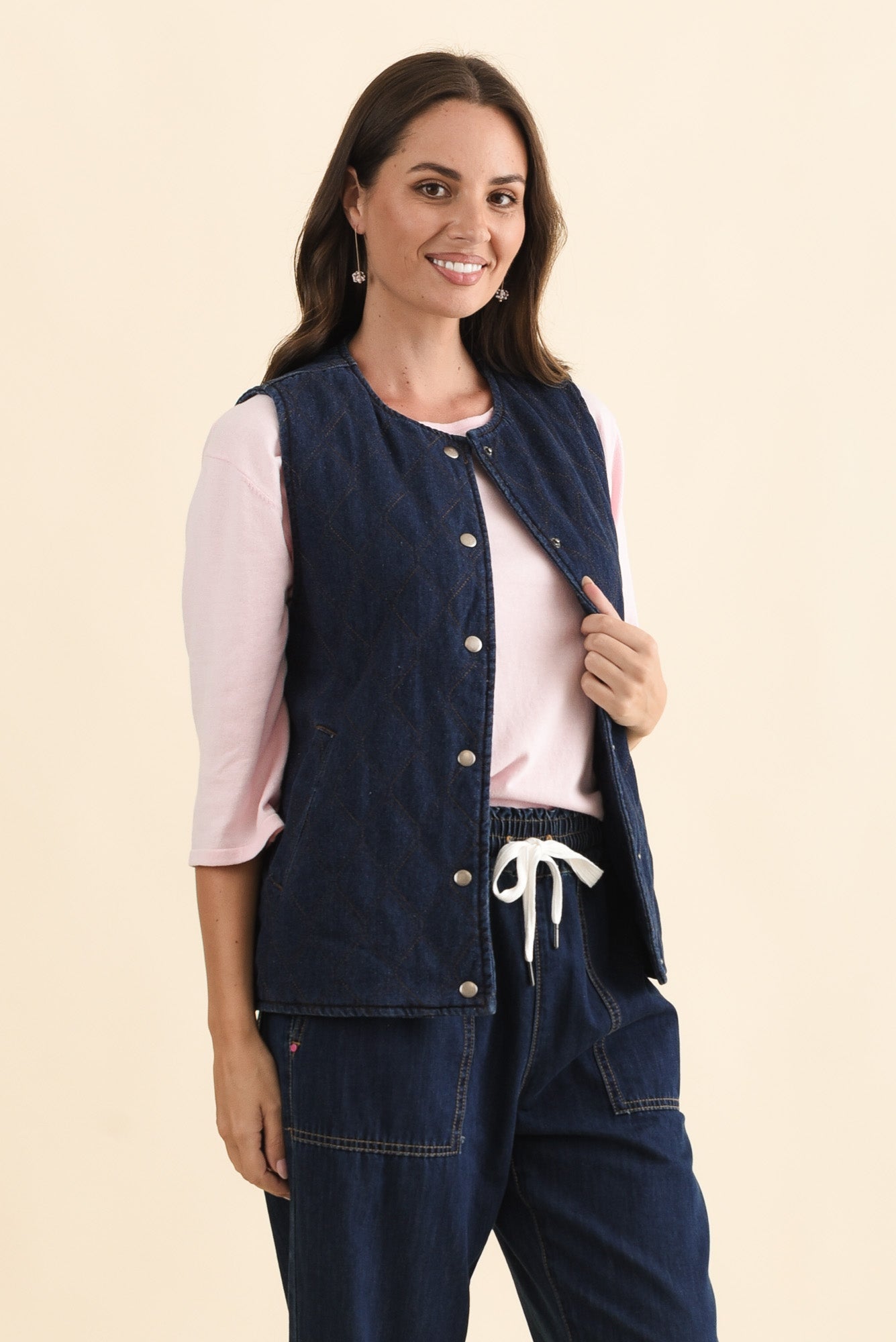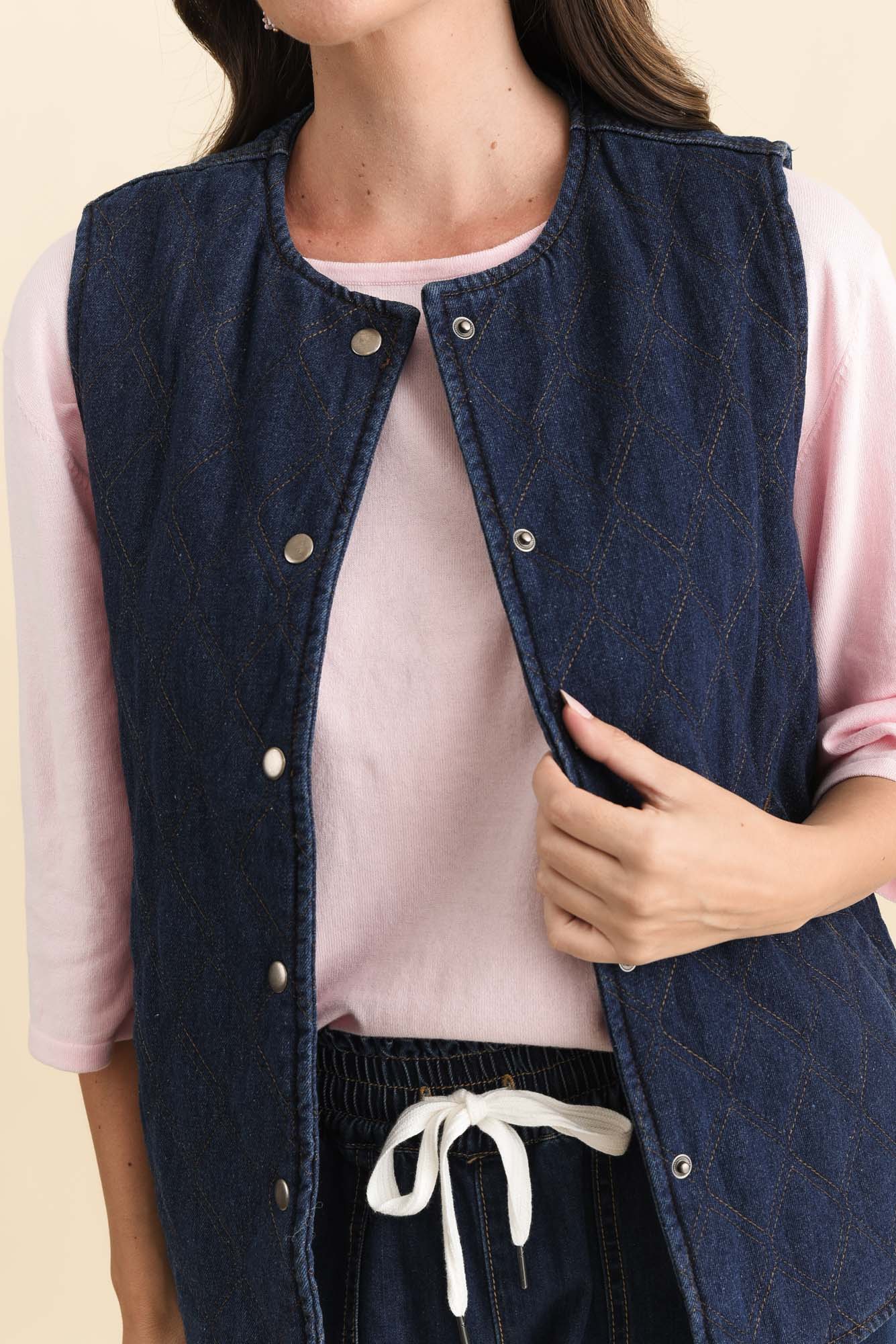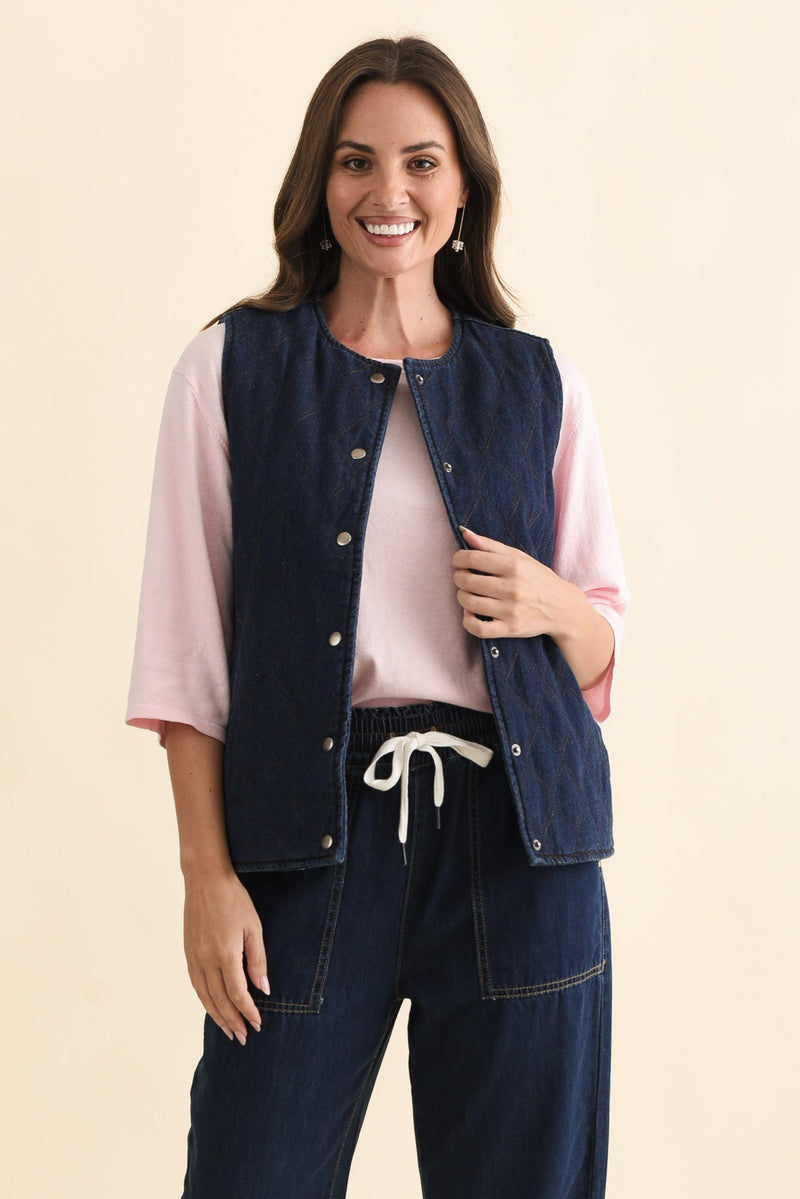 Polly Dark Blue Denim Quilted Vest
