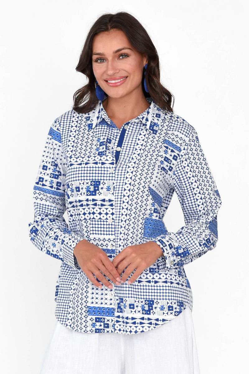 Pomona Blue Mosaic Cotton Shirt