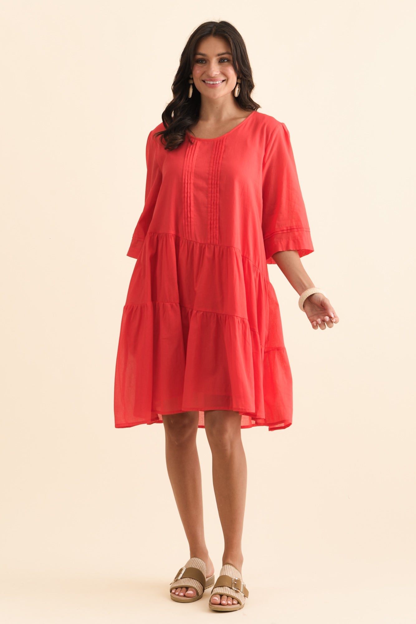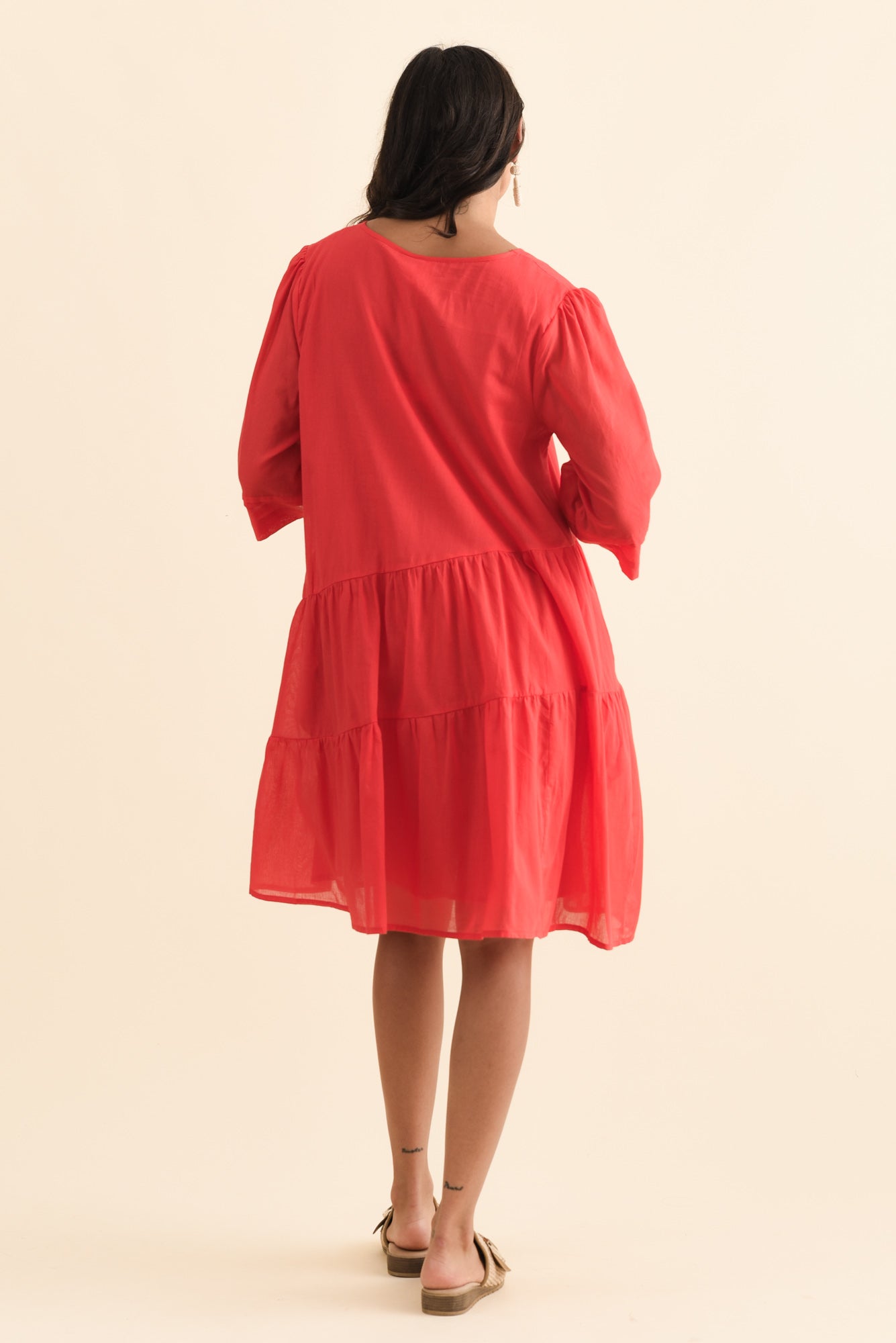 PORTIA RED COTTON ASYMMETRICAL DRESS