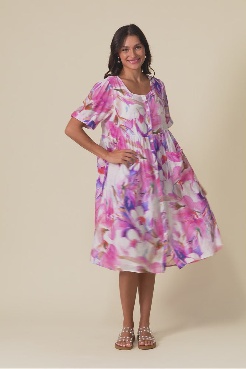 Rayna Pink Floral Button Dress