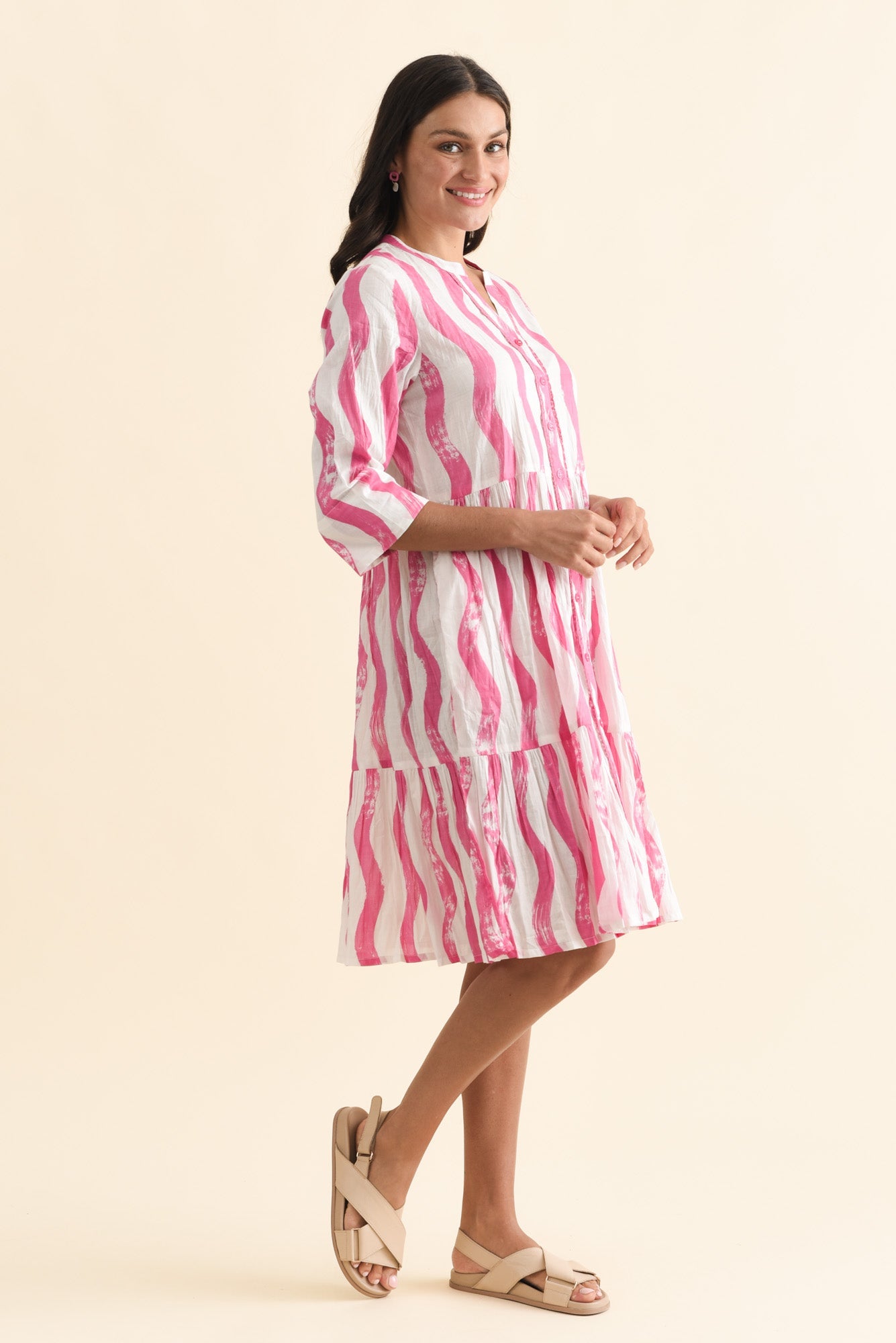 ROMY PINK STRIPE CRINKLE COTTON DRESS