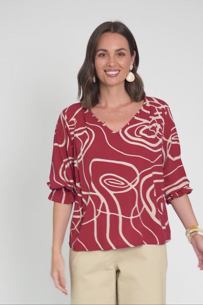Rona Red Swirl Frill Sleeve Top