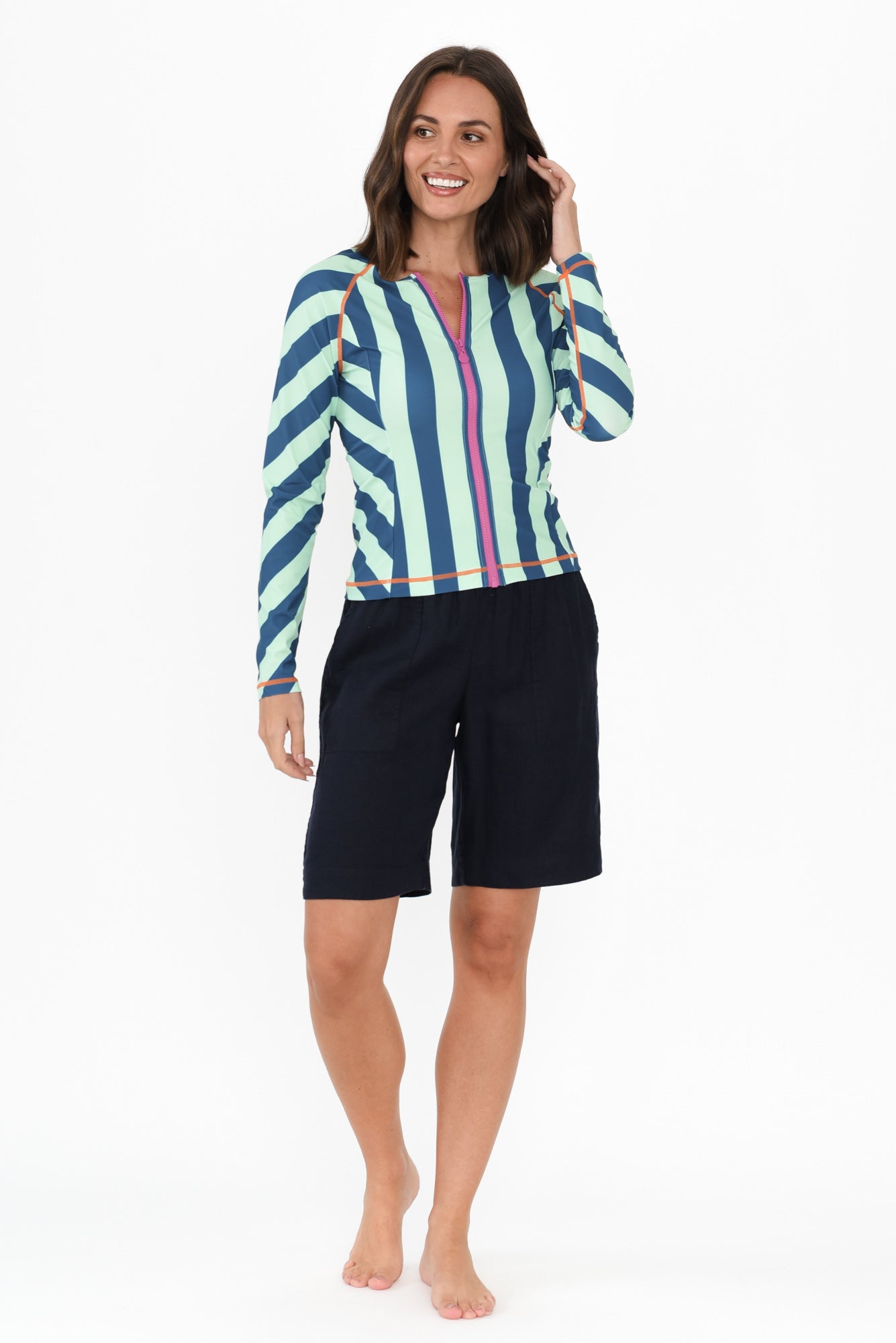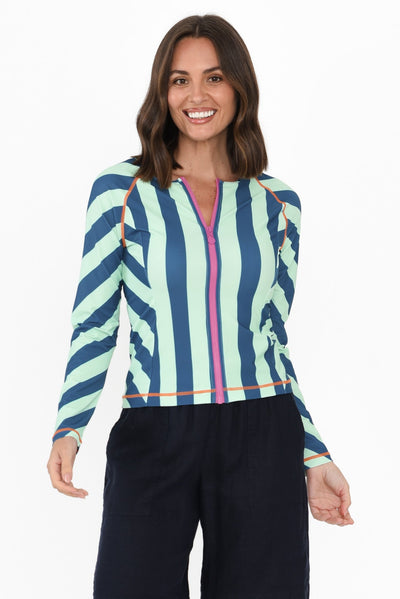 ROSA BLUE STRIPE ZIP RASH VEST