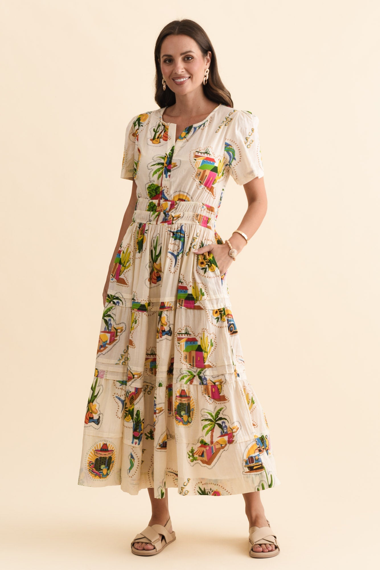 ROSALINE NATURAL FIESTA COTTON TIER DRESS