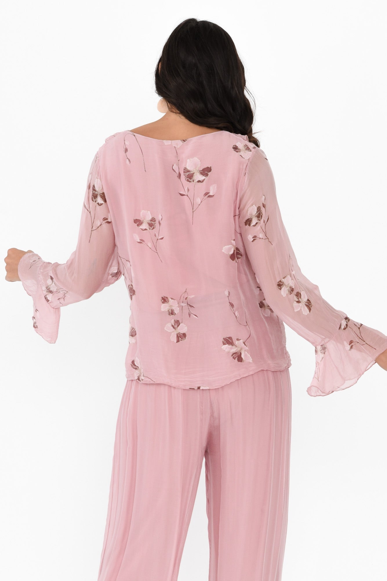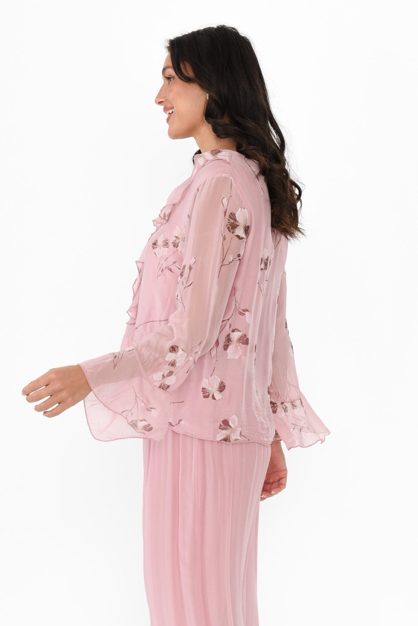 RUTH PINK FLORAL SILK FRILL TOP