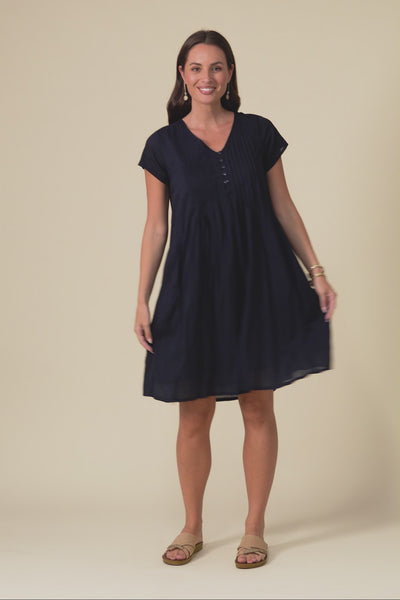 Sabina Navy Crinkle Cotton Dress