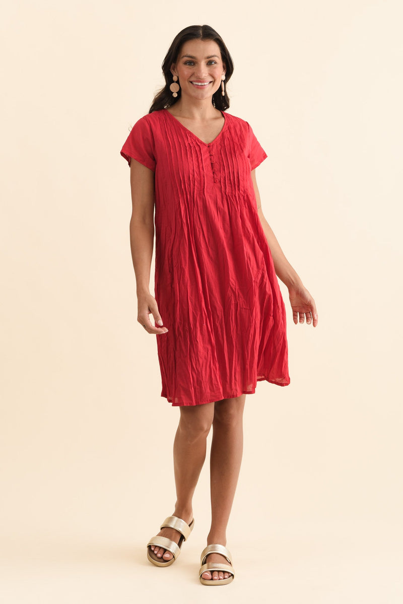 SABINA RED CRINKLE COTTON DRESS
