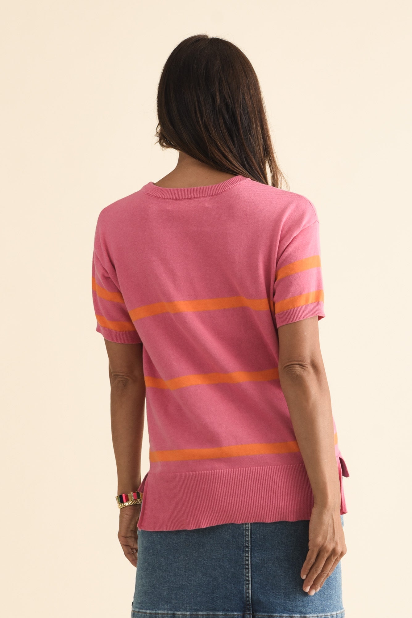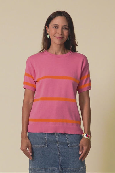 SAGE PINK STRIPE COTTON KNIT TOP