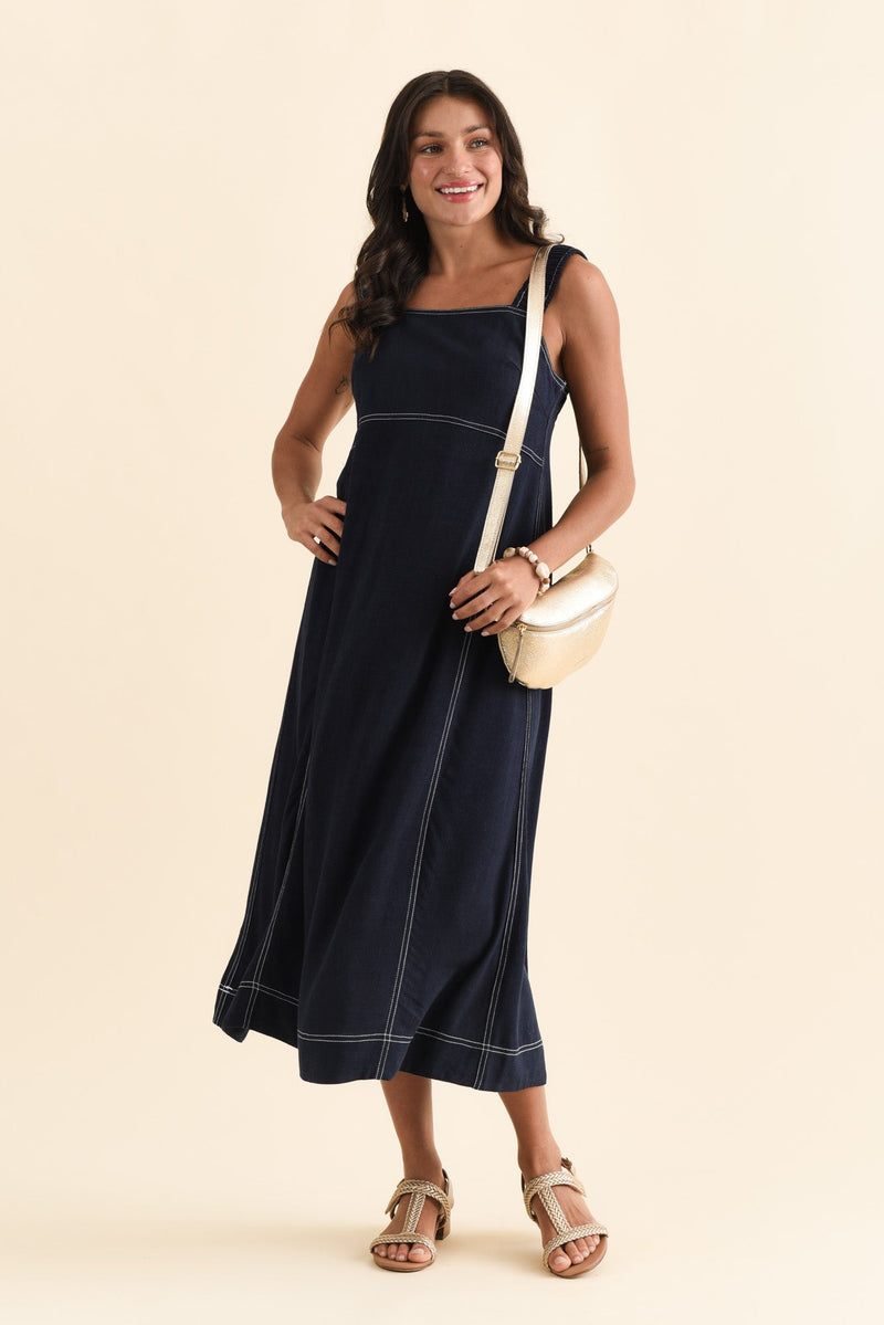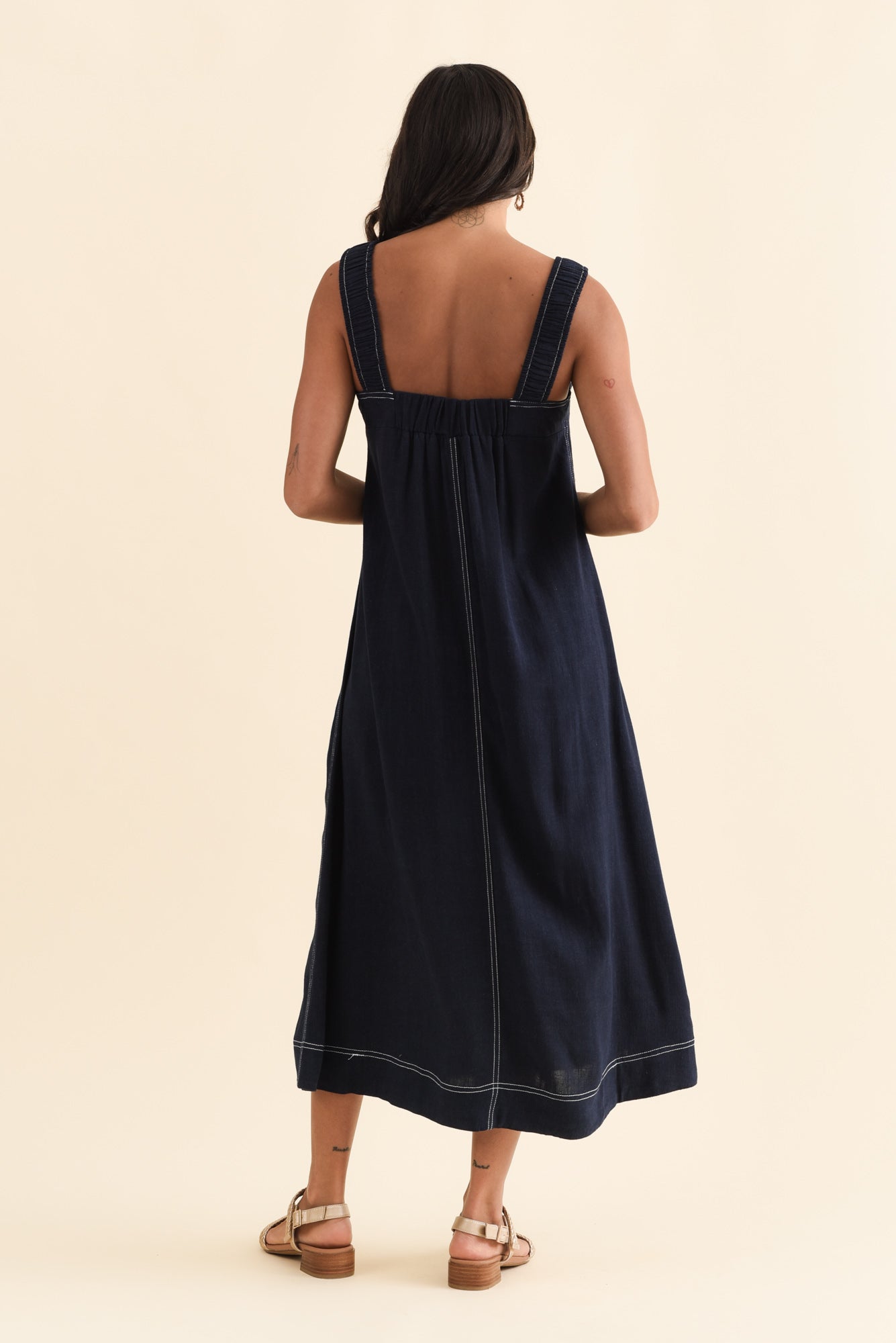 SAYLOR NAVY CONTRAST LINEN BLEND DRESS