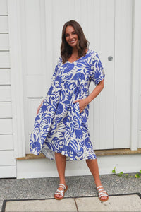 Sharlene Blue Botanical Midi Dress