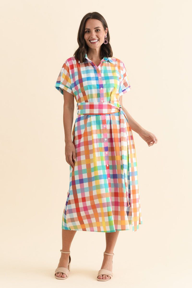 SHERRYL WHITE CHECK COTTON SHIRT DRESS