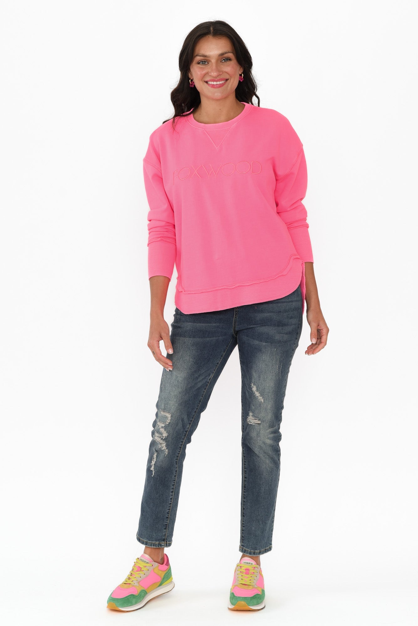 Simplified Bright Pink Crewneck Sweatshirt